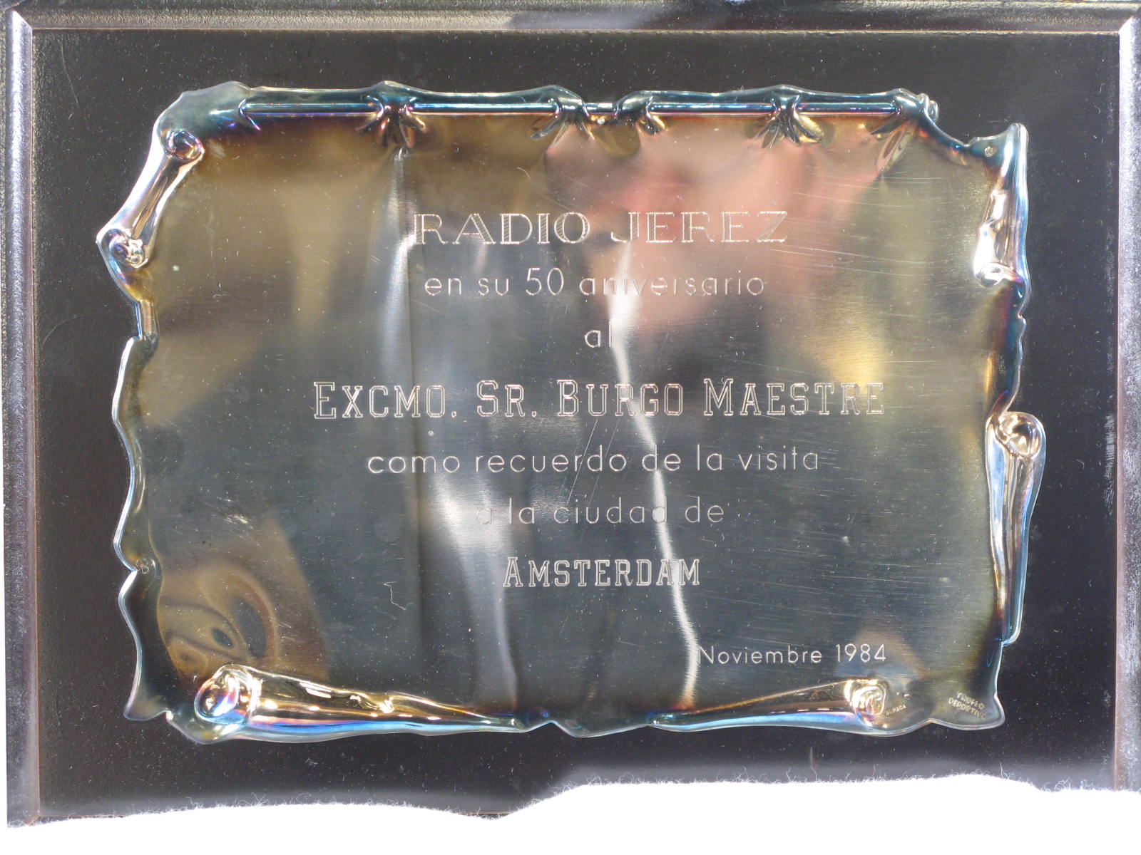Tekstbord van Radio Jerez geschonken bij bezoek aan ...