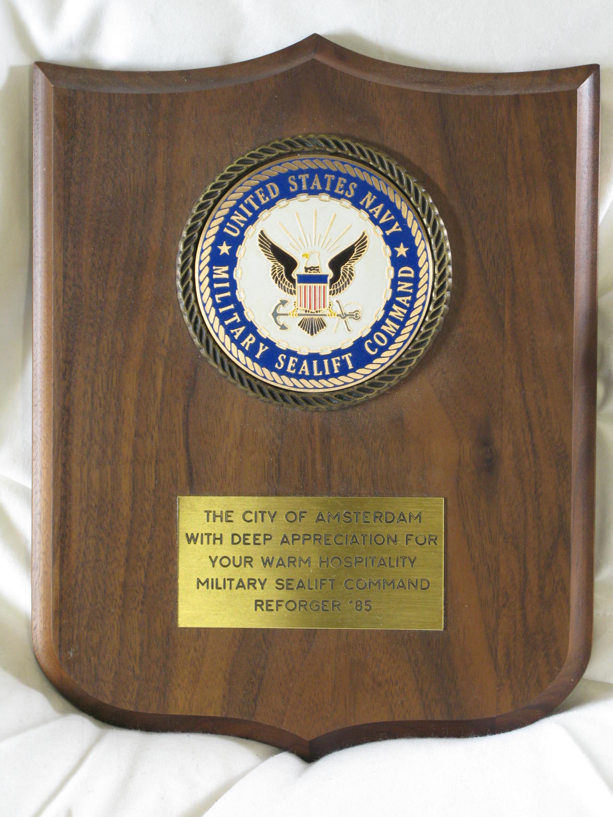 Wapenbordje MILITARY SEALIFT COMMAND als dank voor g...