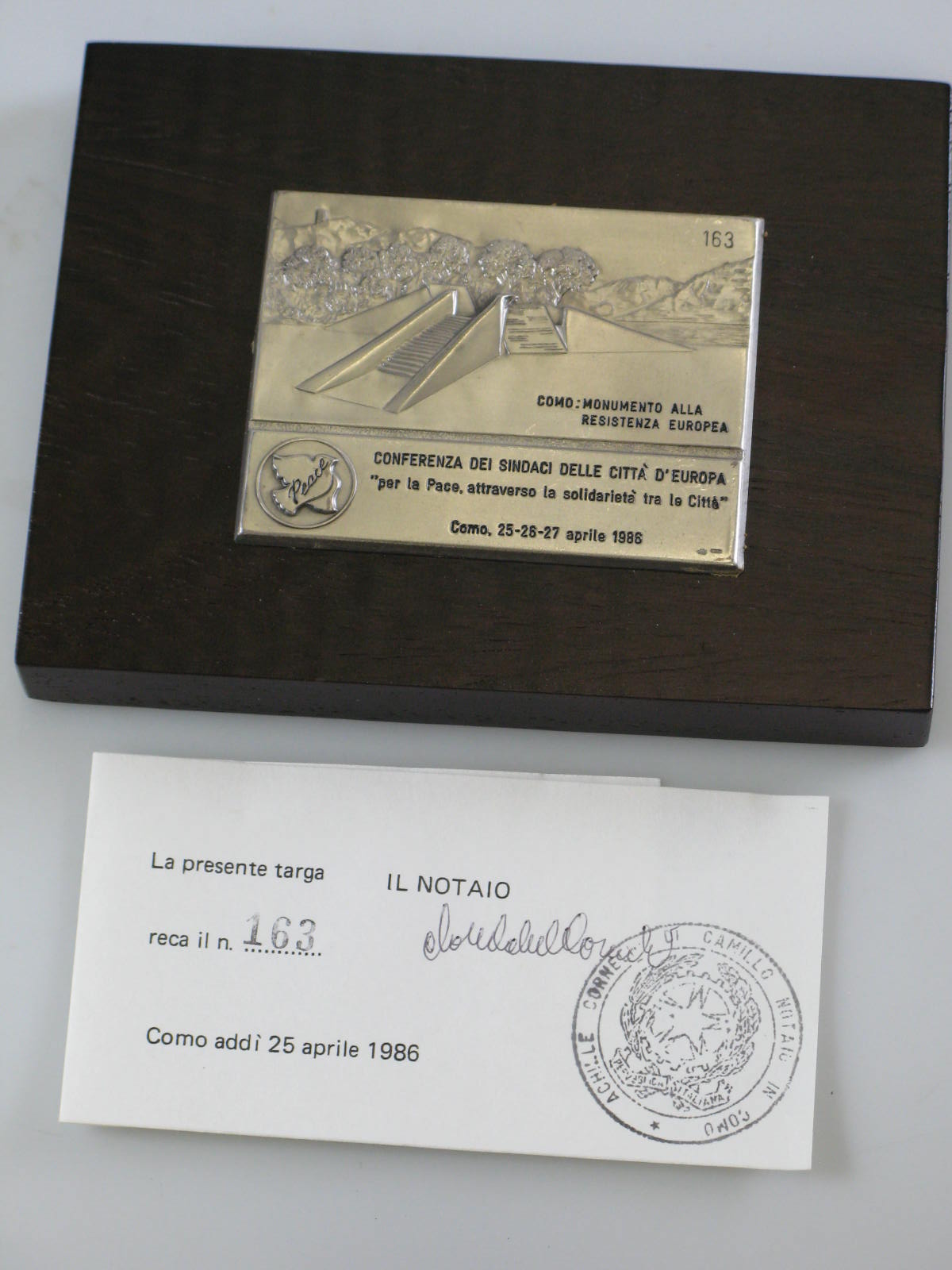 Plaquette geschonken door J.I.F. Catalunya en C. A.S...