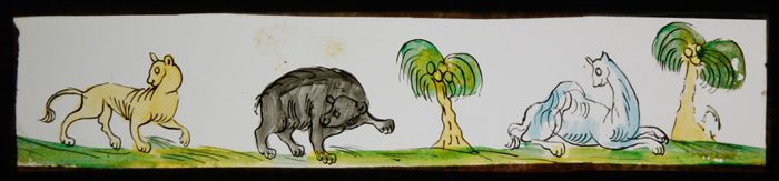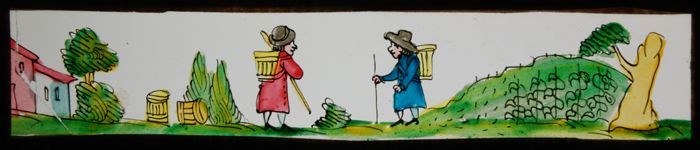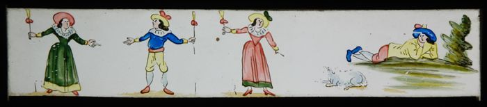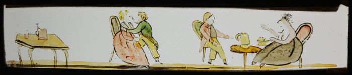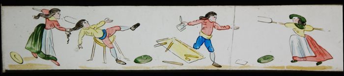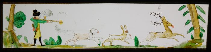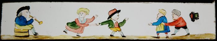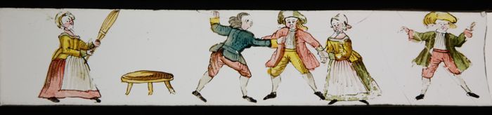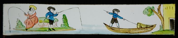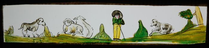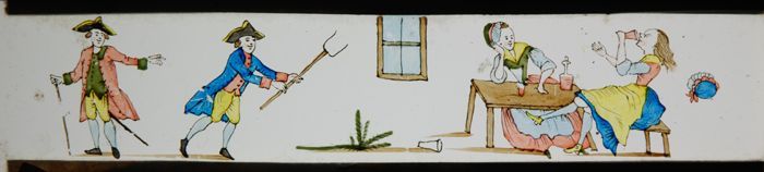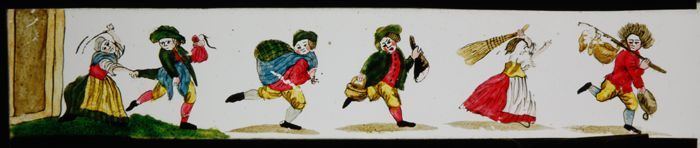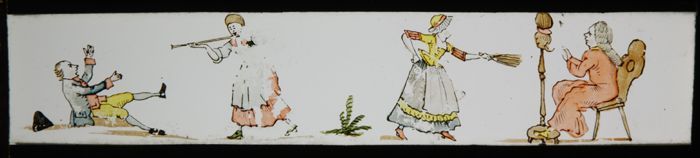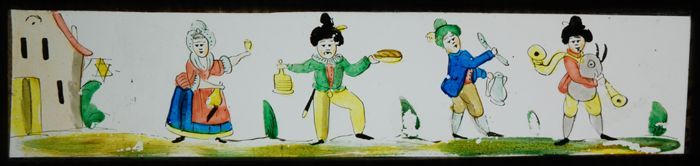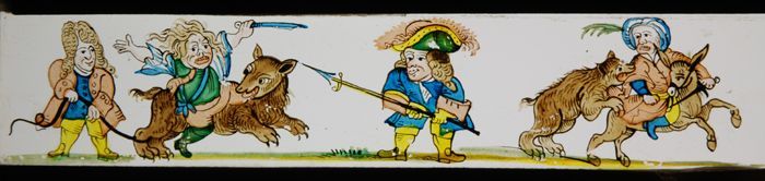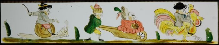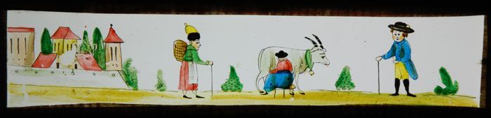 Handgeschilderde lantaarnplaat met komisch verhaal o...