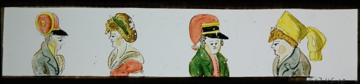 Handgeschilderde lantaarnplaat met vreemde hoofddeksels