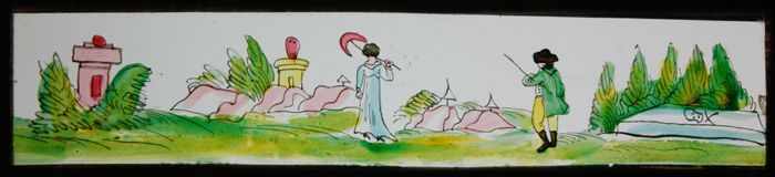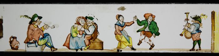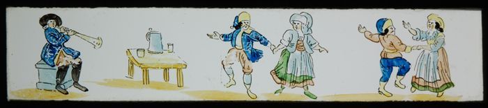 Handgeschilderde lantaarnplaat met muzikant en danse...