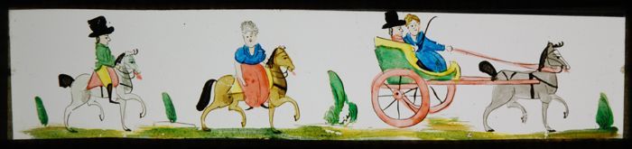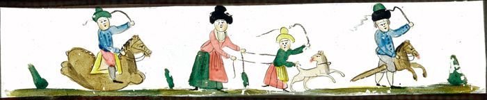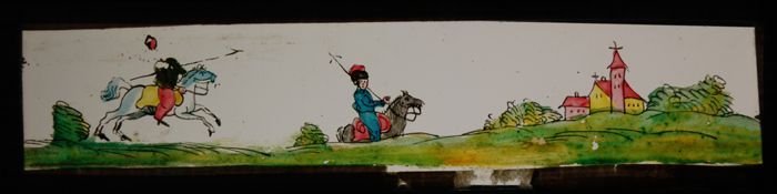 Handgeschilderde lantaarnplaat met twee cavaleristen...