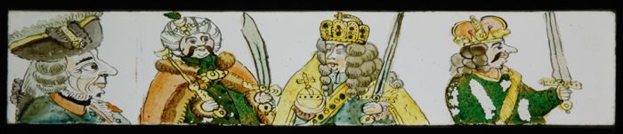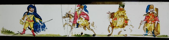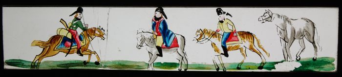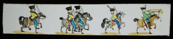 Handgeschilderde lantaarnplaat met soldaten te paard...