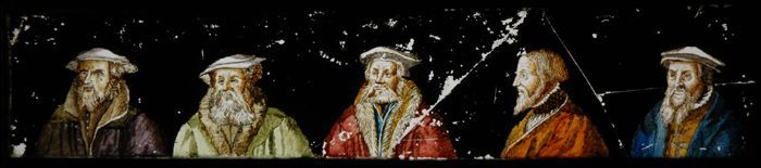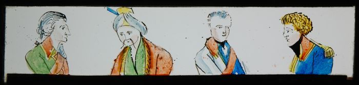 Handgeschilderde lantaarnplaat met portretten van ho...