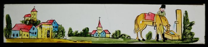 Handgeschilderde lantaarnplaat met man en paard, en ...