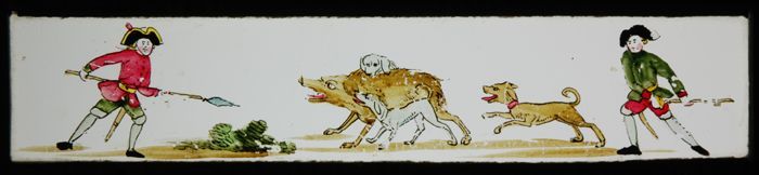 Handgeschilderde lantaarnplaat met wolvenjacht