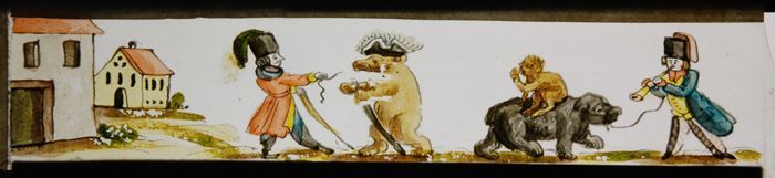 Handgeschilderde lantaarnplaat met gedresseerde beer...