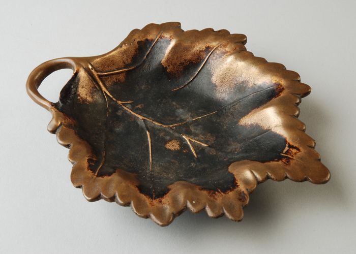 Bladvormige asbak met "N.V. Wolders' Kopergieterij"