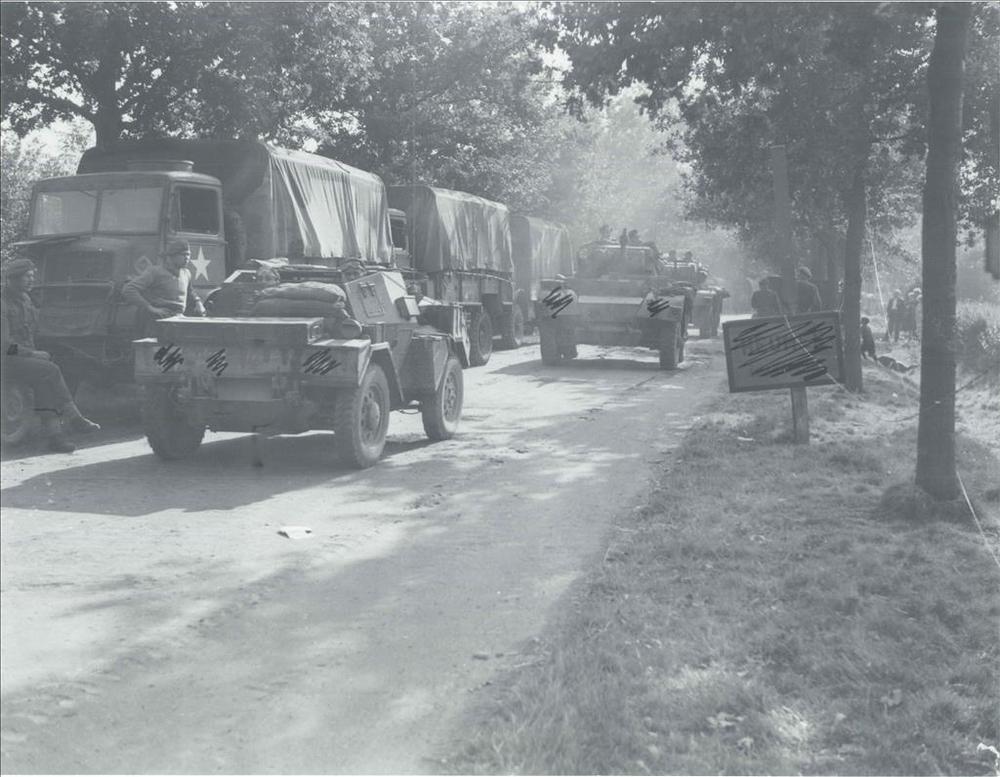Daimler scout, Bedford vrachtwagen, Heumen, nabij sl...
