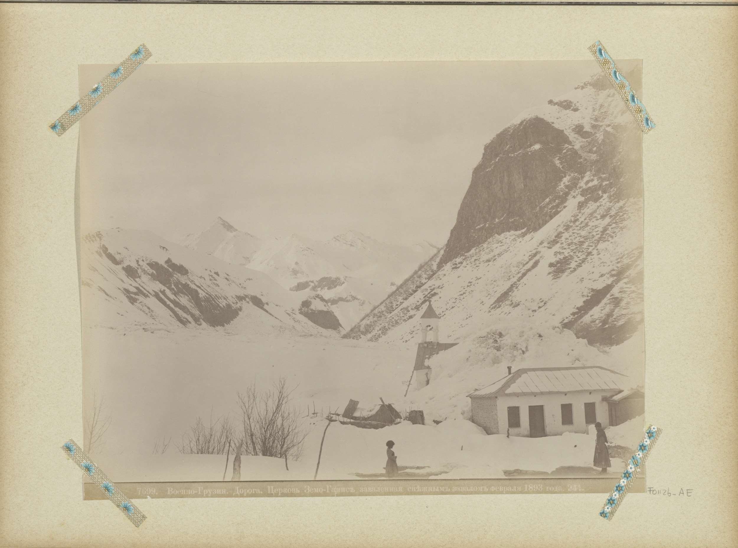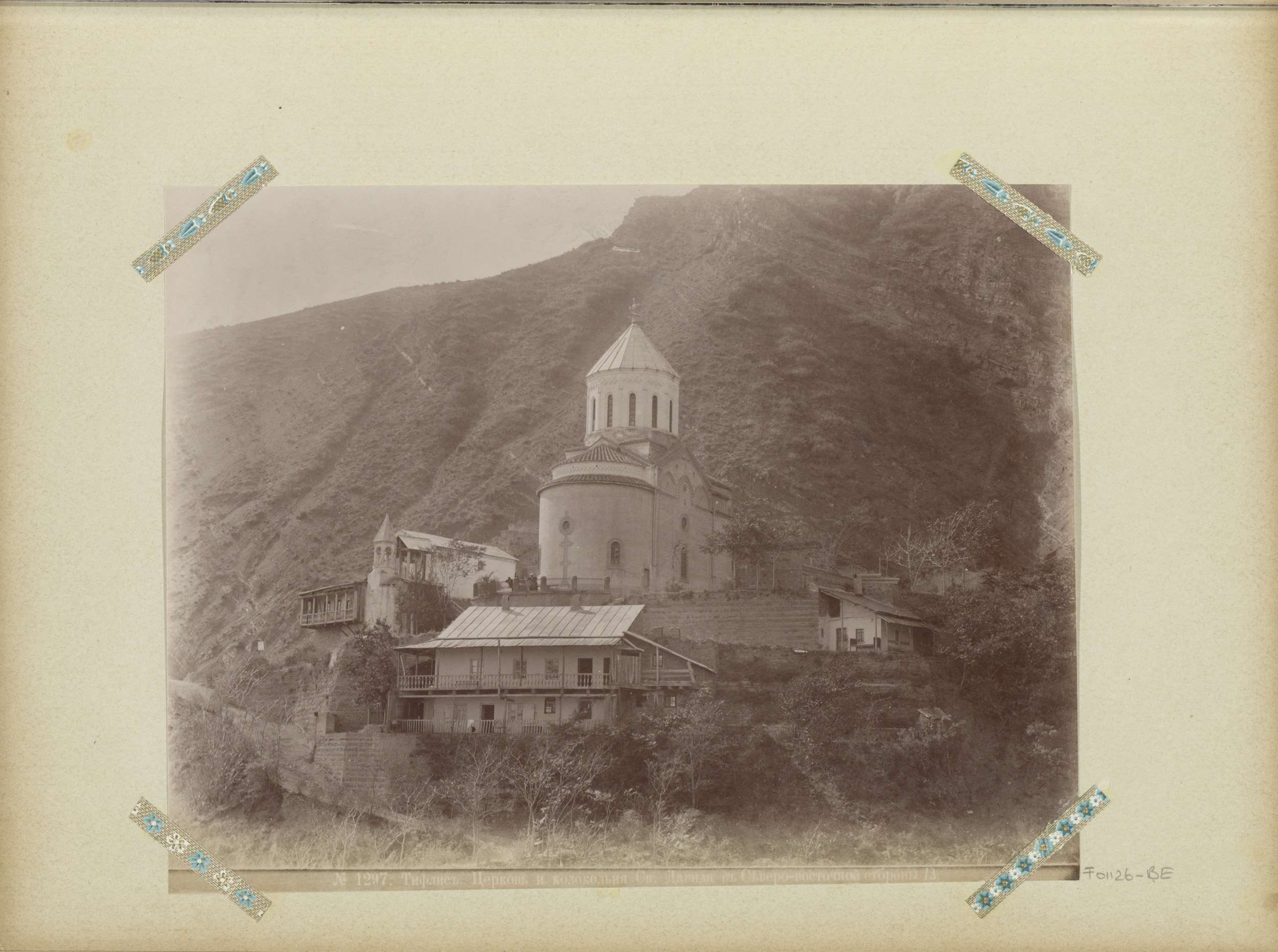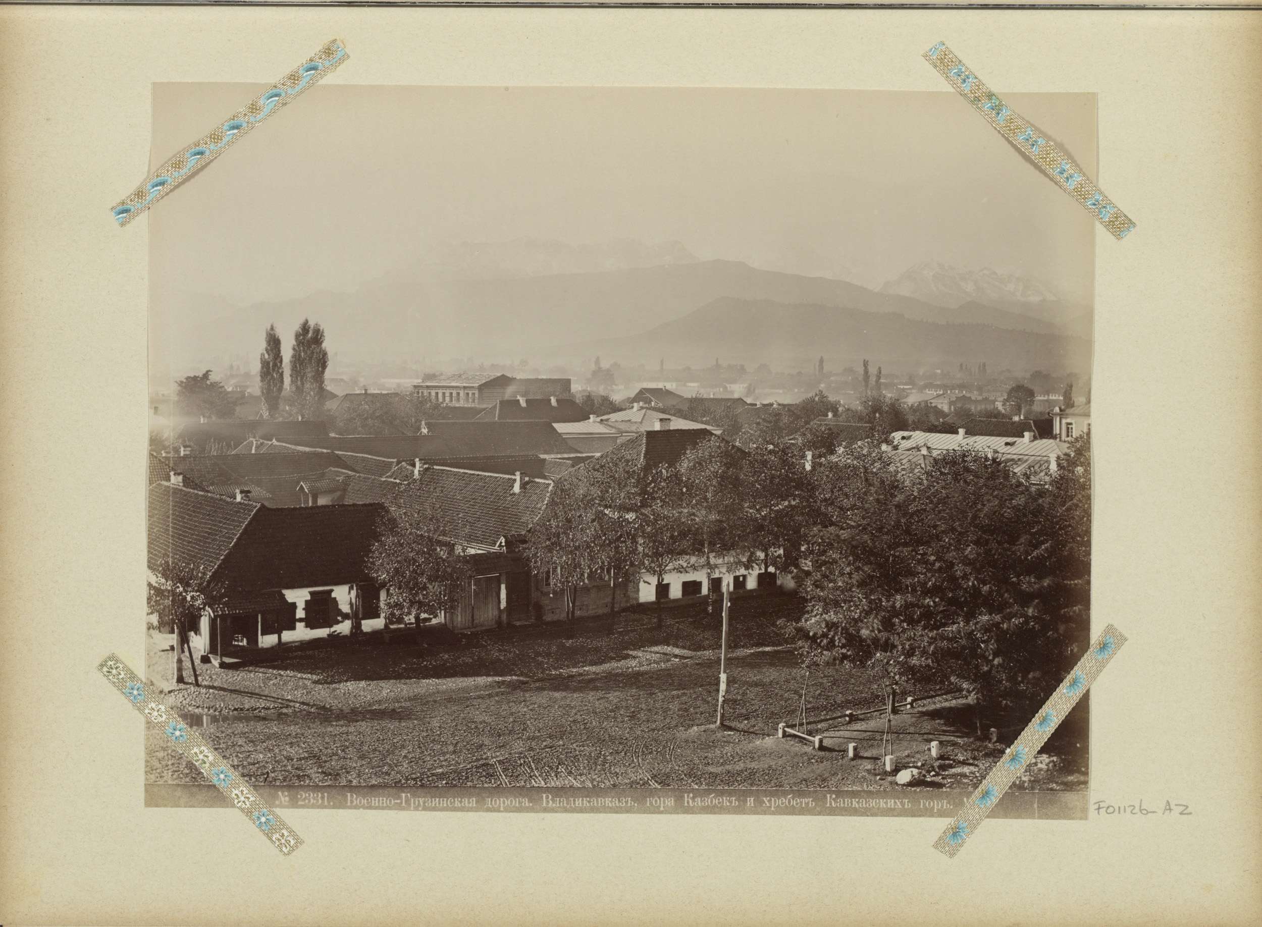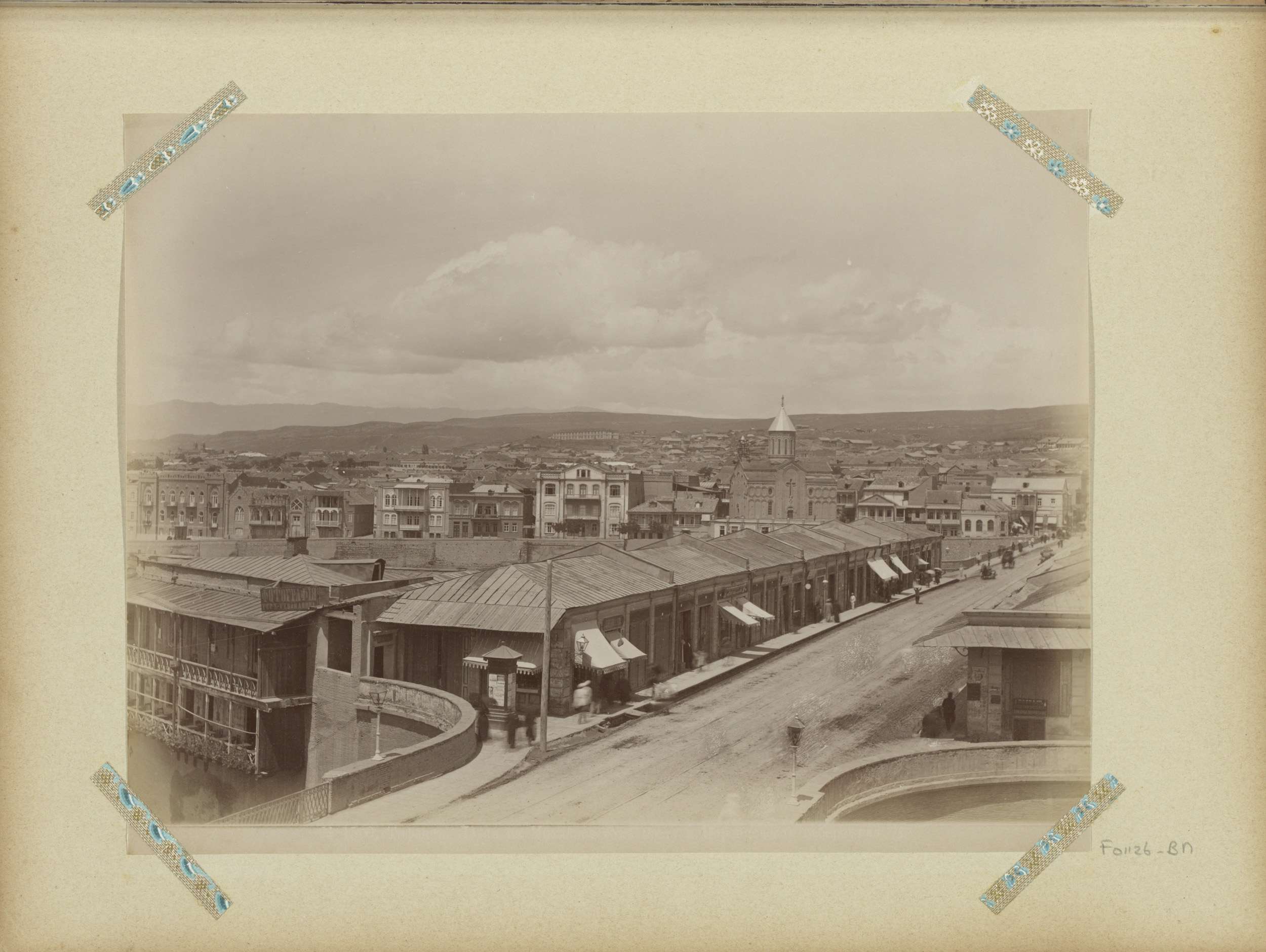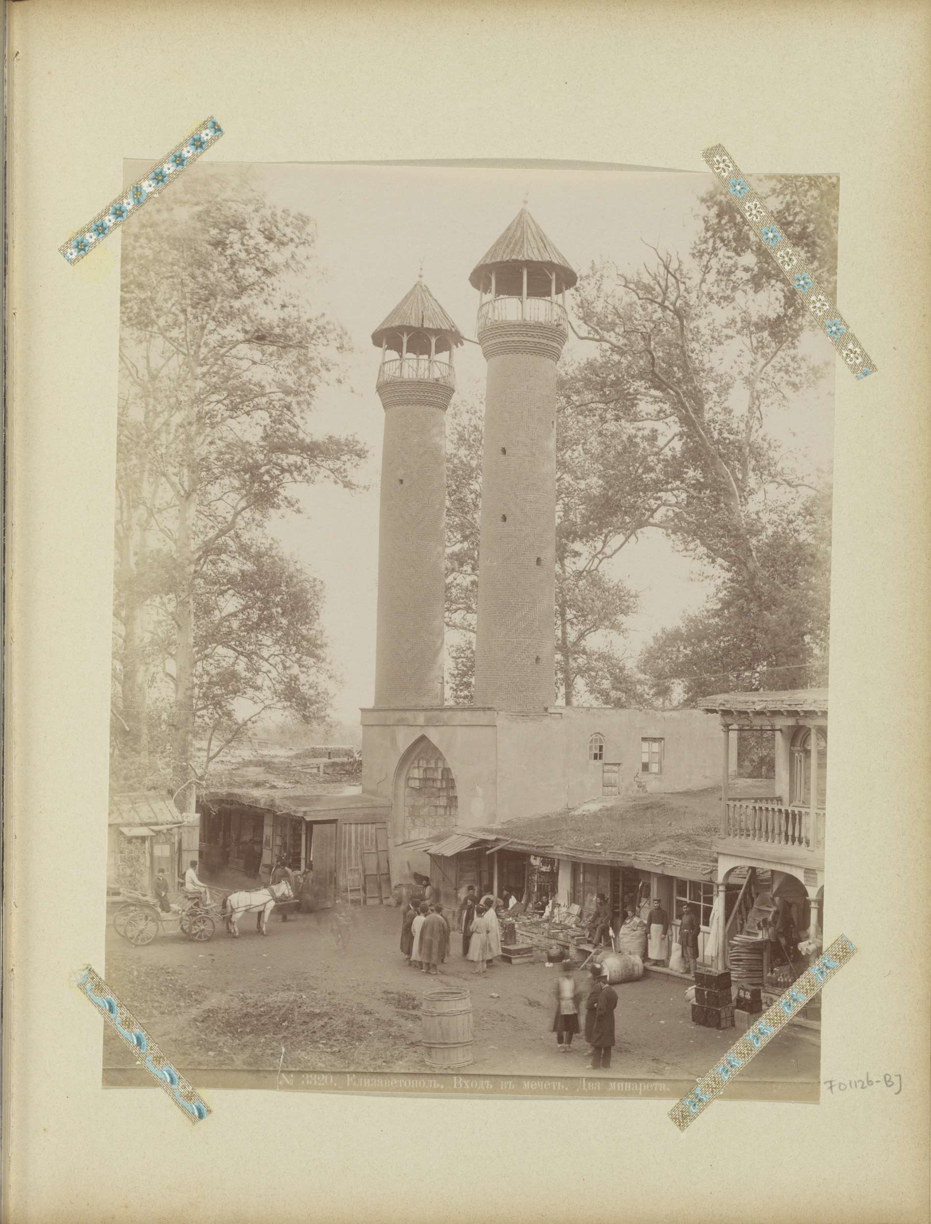 Moskee met twee minaretten, vermoedelijk in de Kaukasus