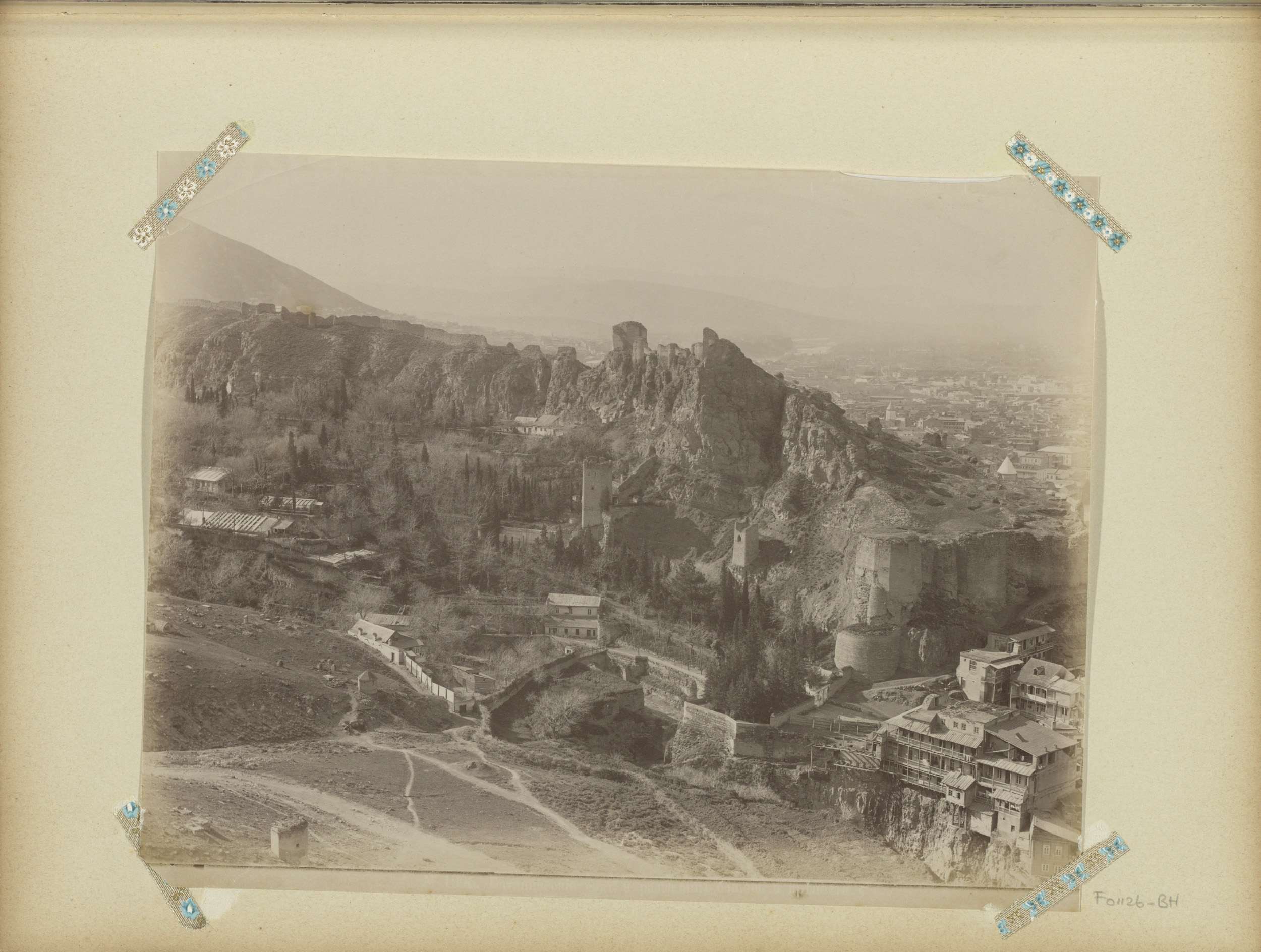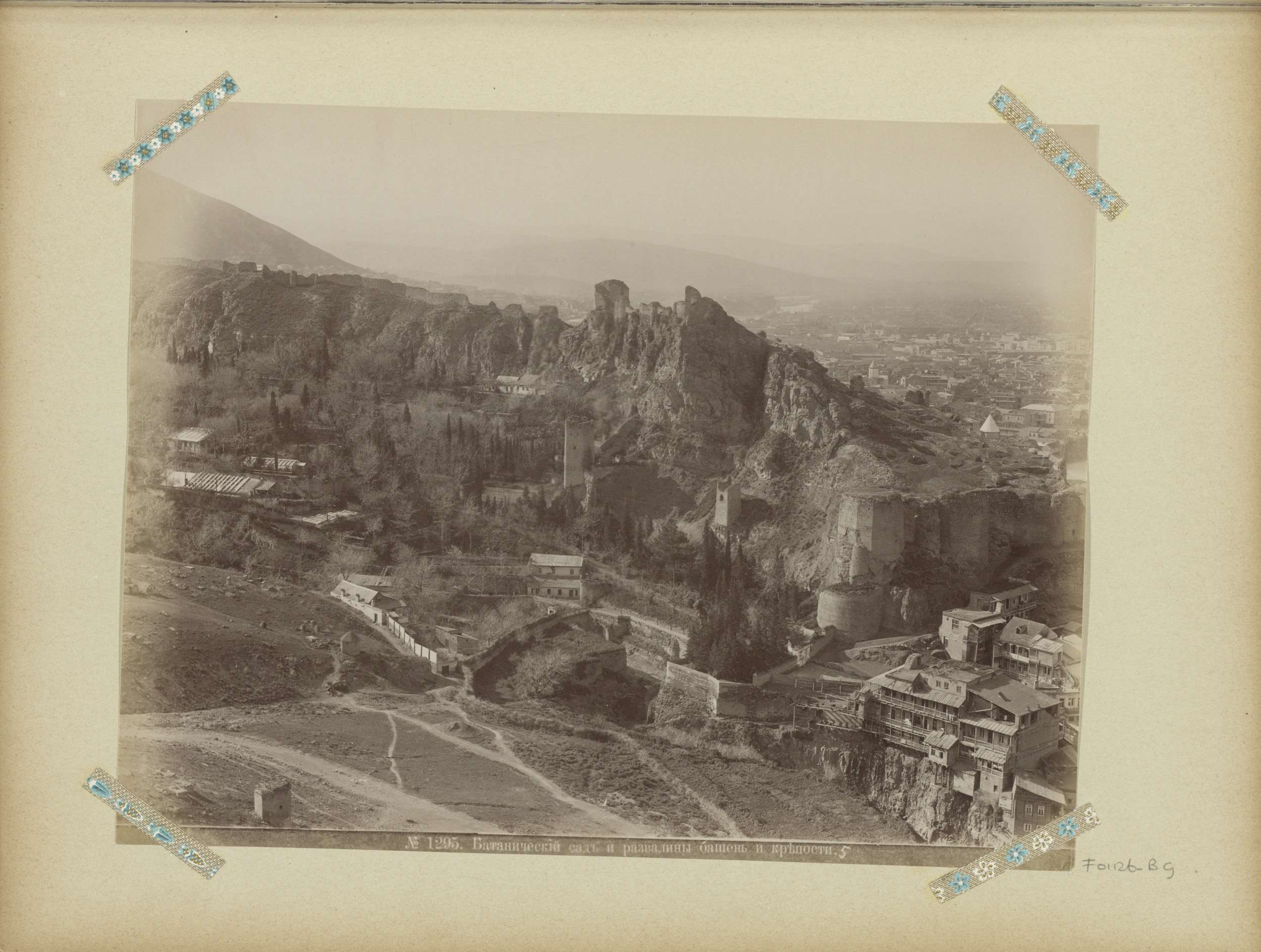 Gezicht op tuin en kasteelruïne in Tiflis