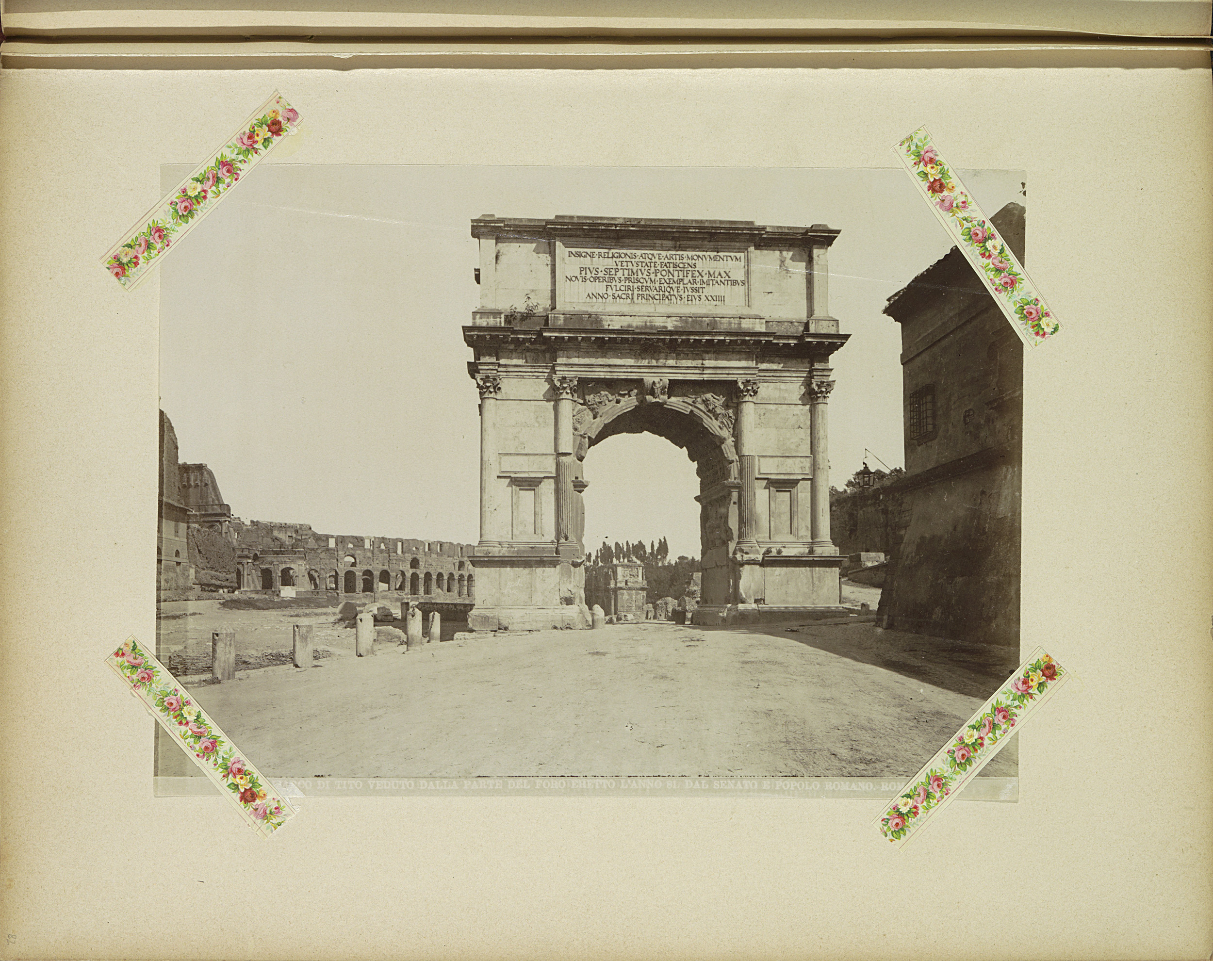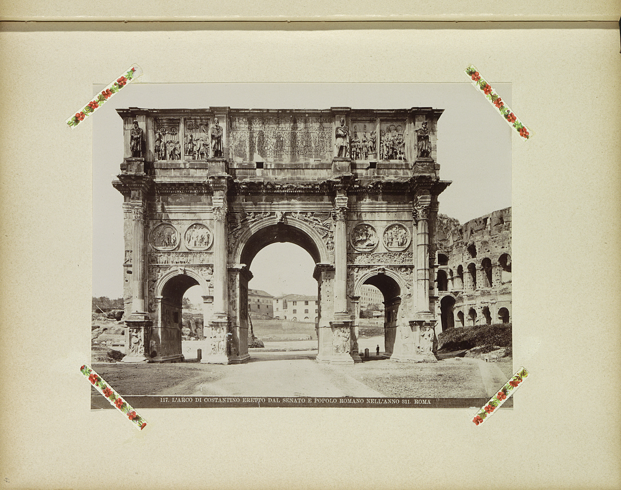 Boog van Constantijn met rechts het Colosseum in Rome