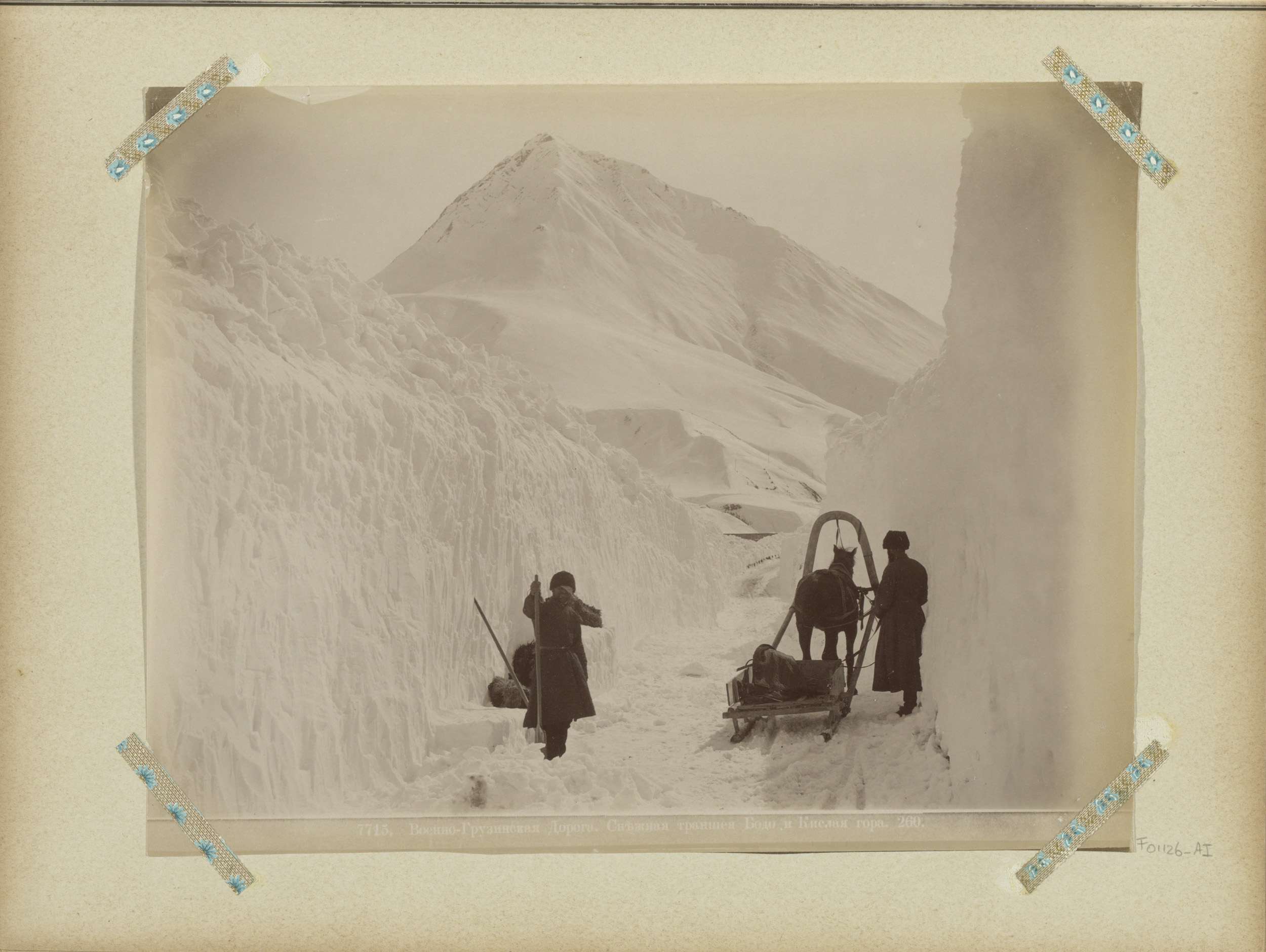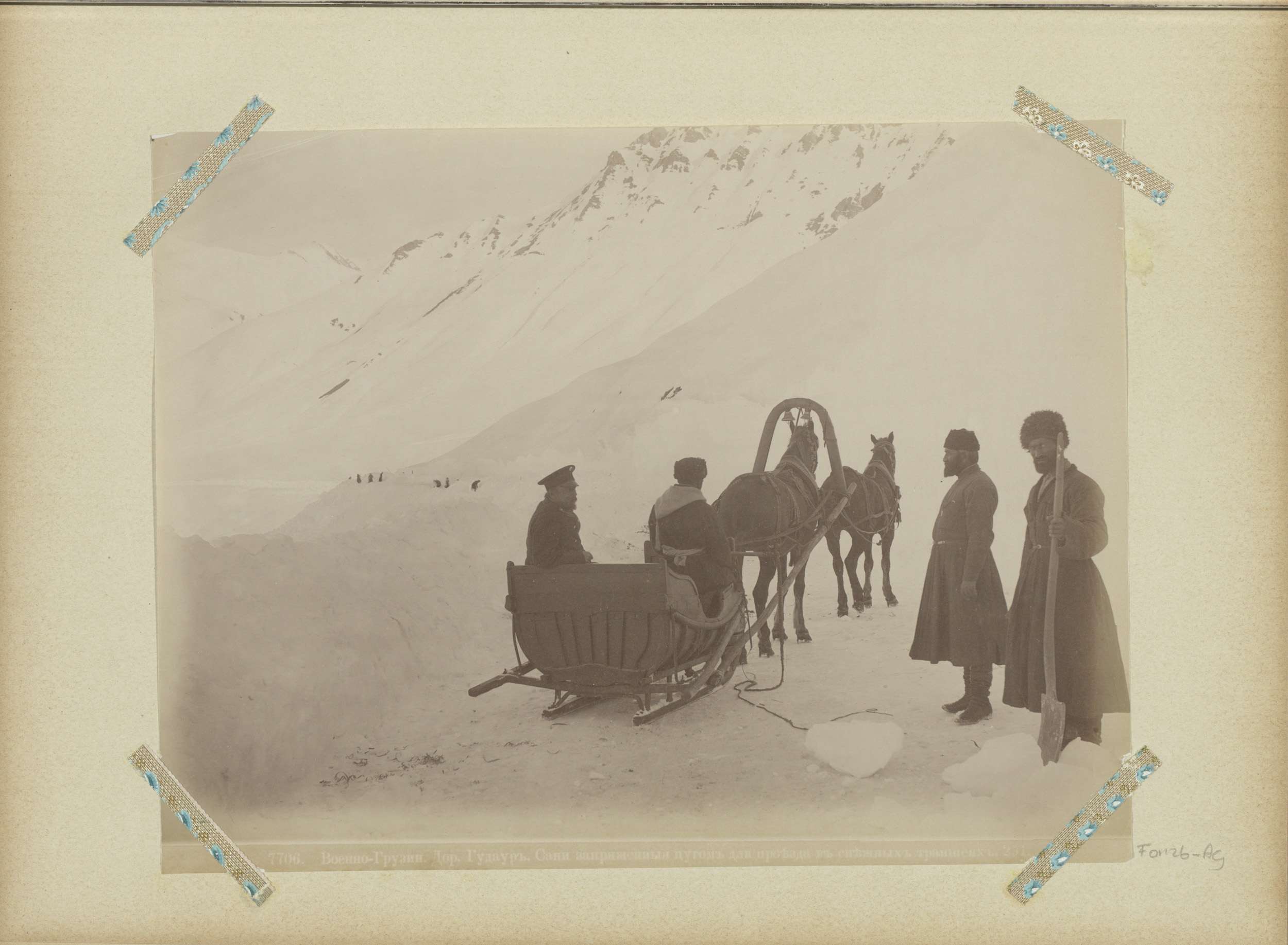 Paardenslee en sneeuwruimers op de militaire weg in ...