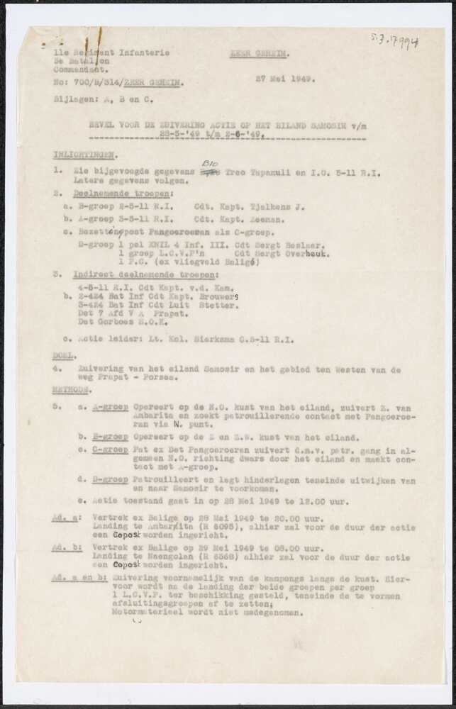 Order van Compies. Commandant 5de Compagnie aan Pelo...