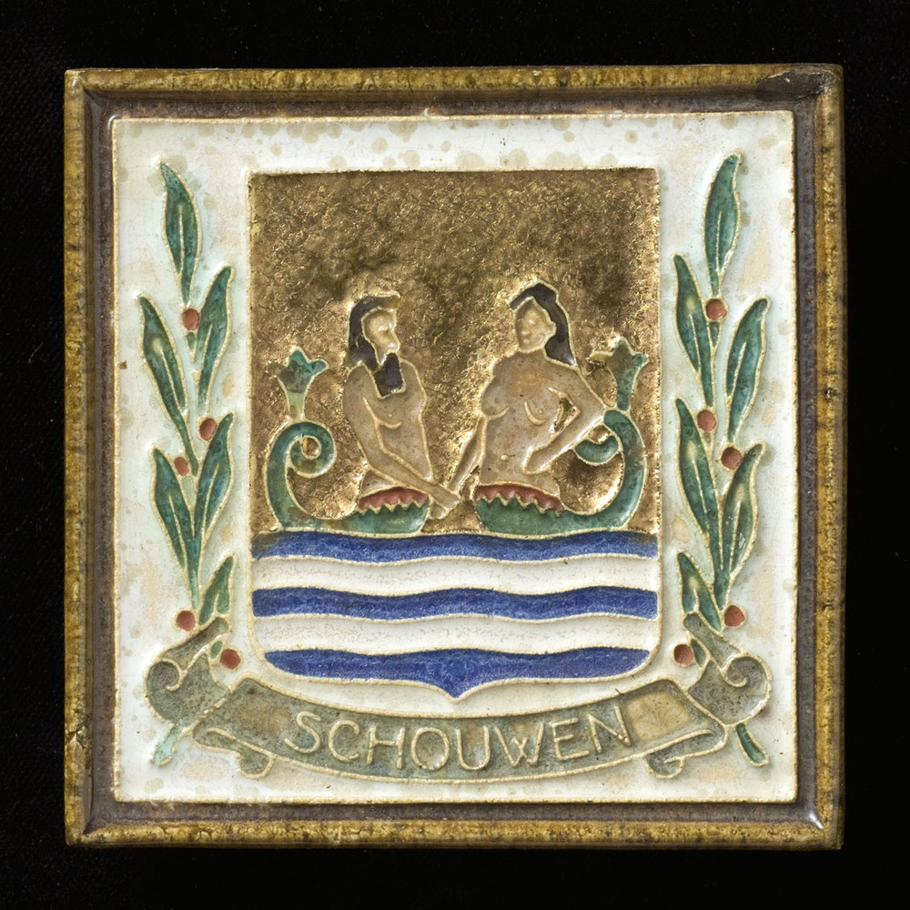 Tegel in cloisonné-techniek, voorstellende wapen Sch...