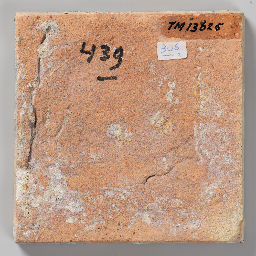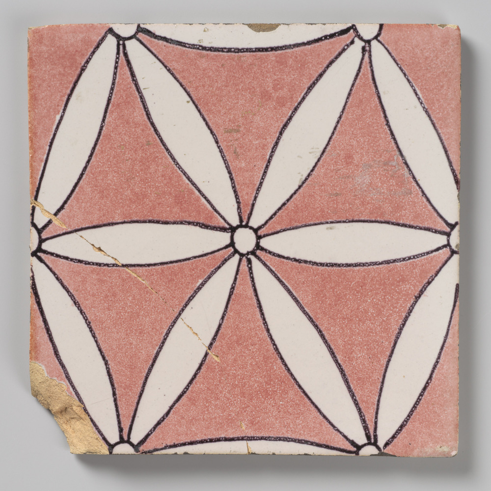 tegelveld van twee tegels van aardewerk in inleg-tec...