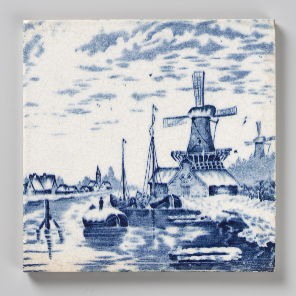 tegel van keramiek met tinglazuur, voorstellende: ke...