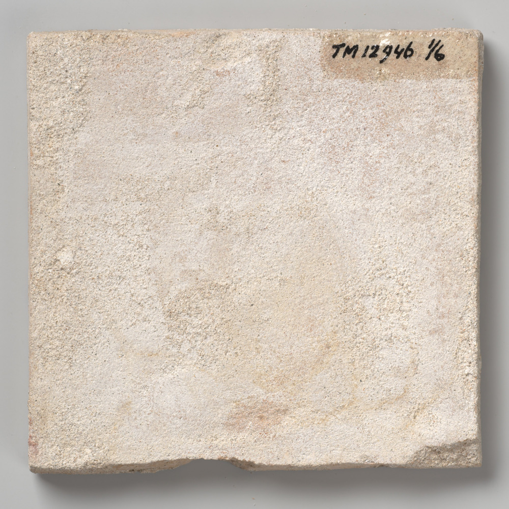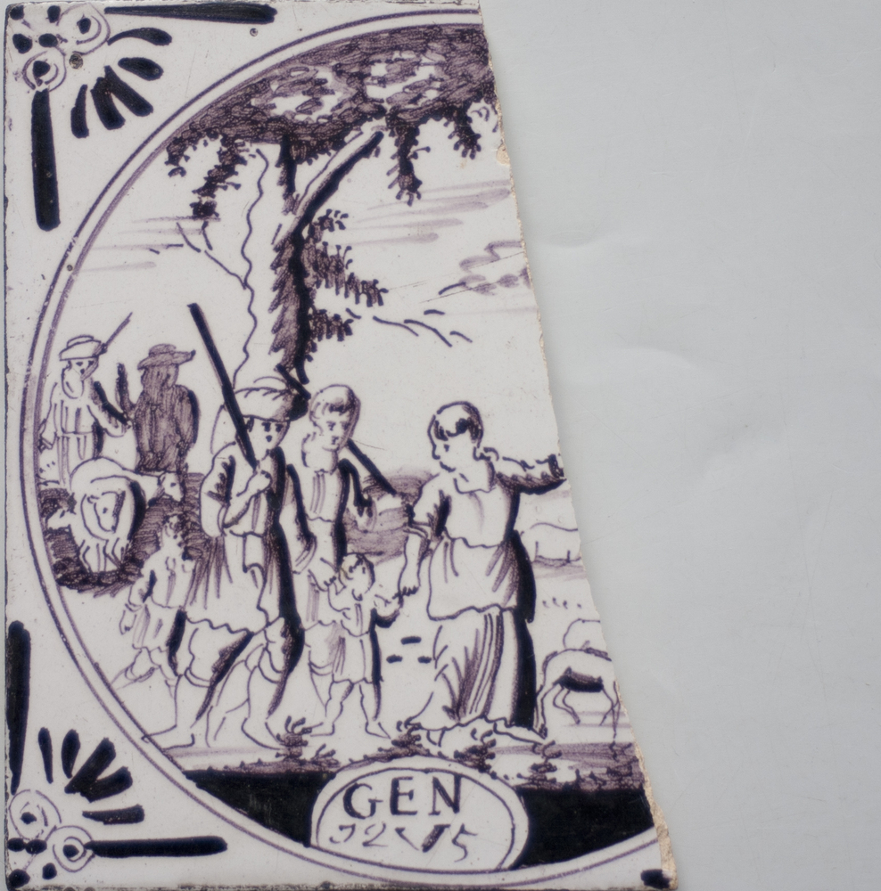 randtegel van aardewerk met tinglazuur, voorstellend...
