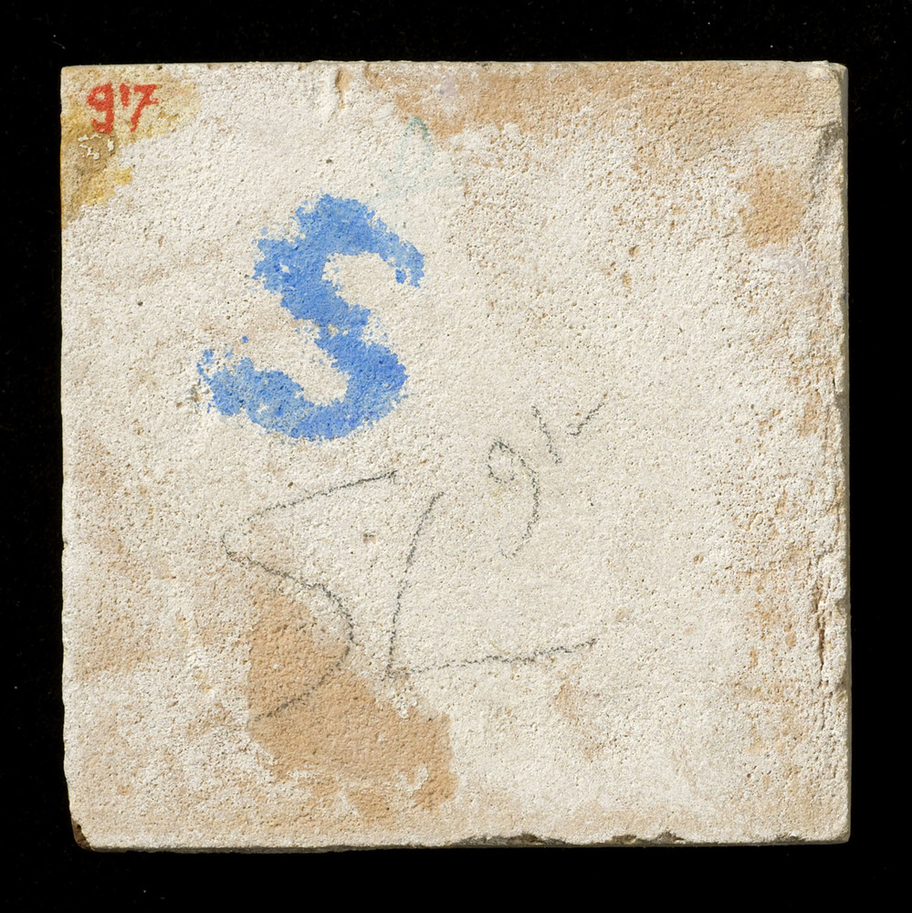 tegel van keramiek met tinglazuur, voorstellende: vo...