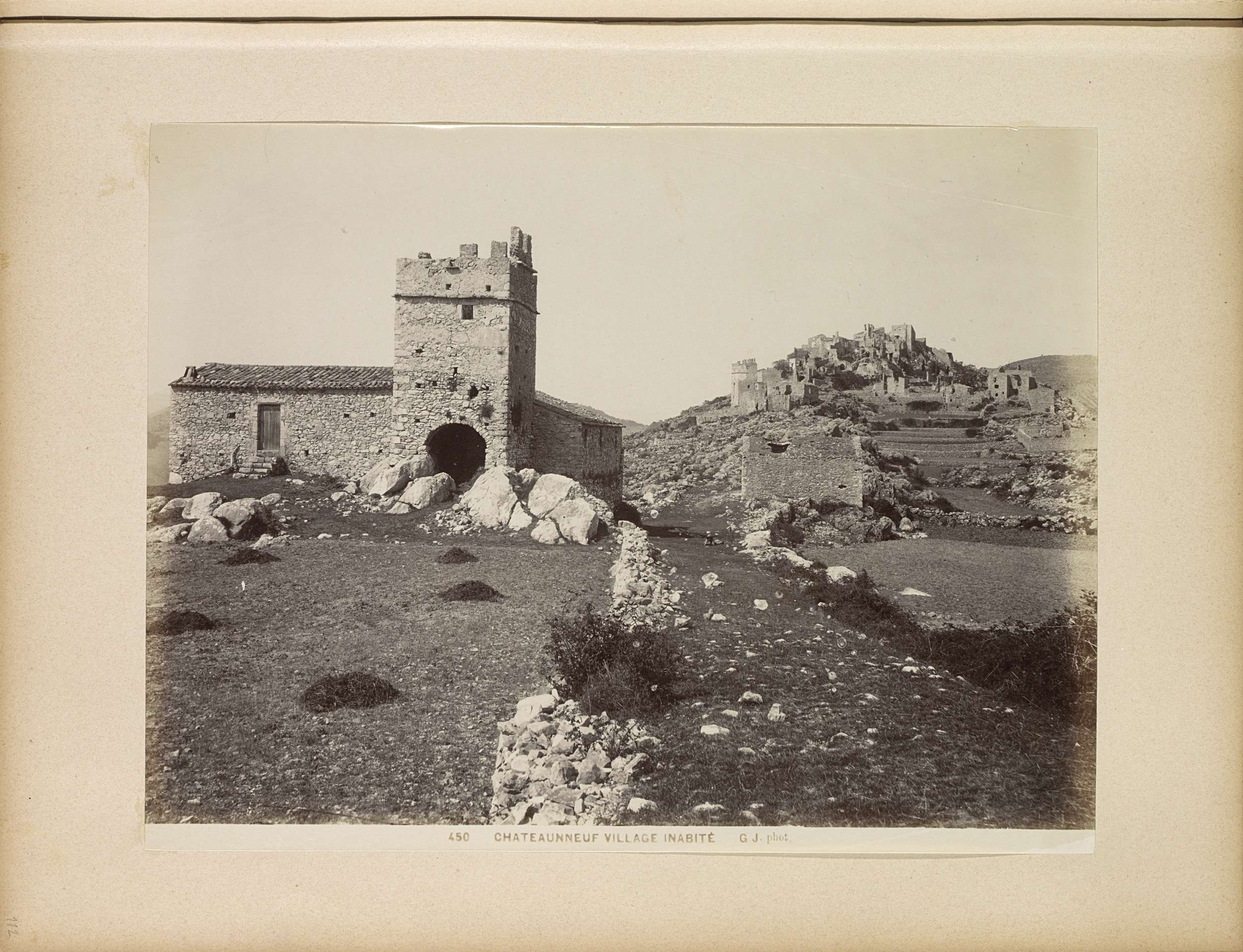 Gezicht op de ruïnes van het verlaten dorp Châteaune...