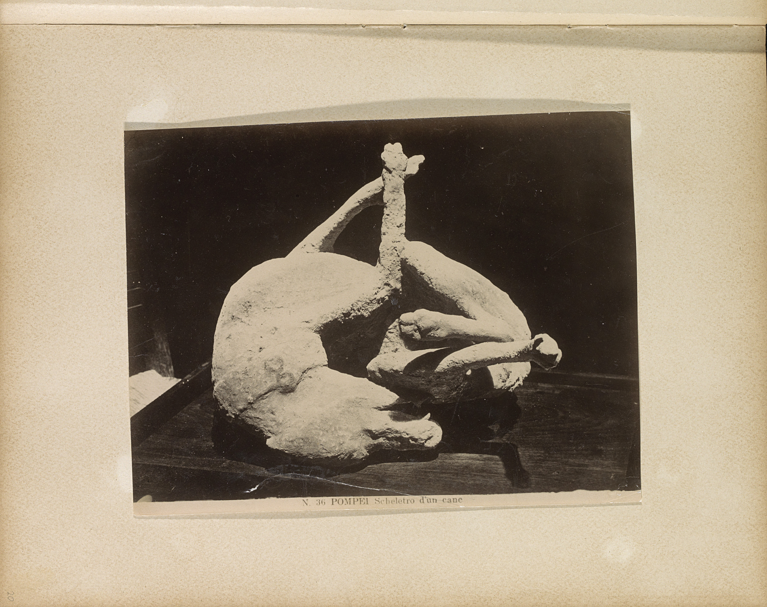 Afgietsel van een hond, gedood tijdens de vulkaanuit...
