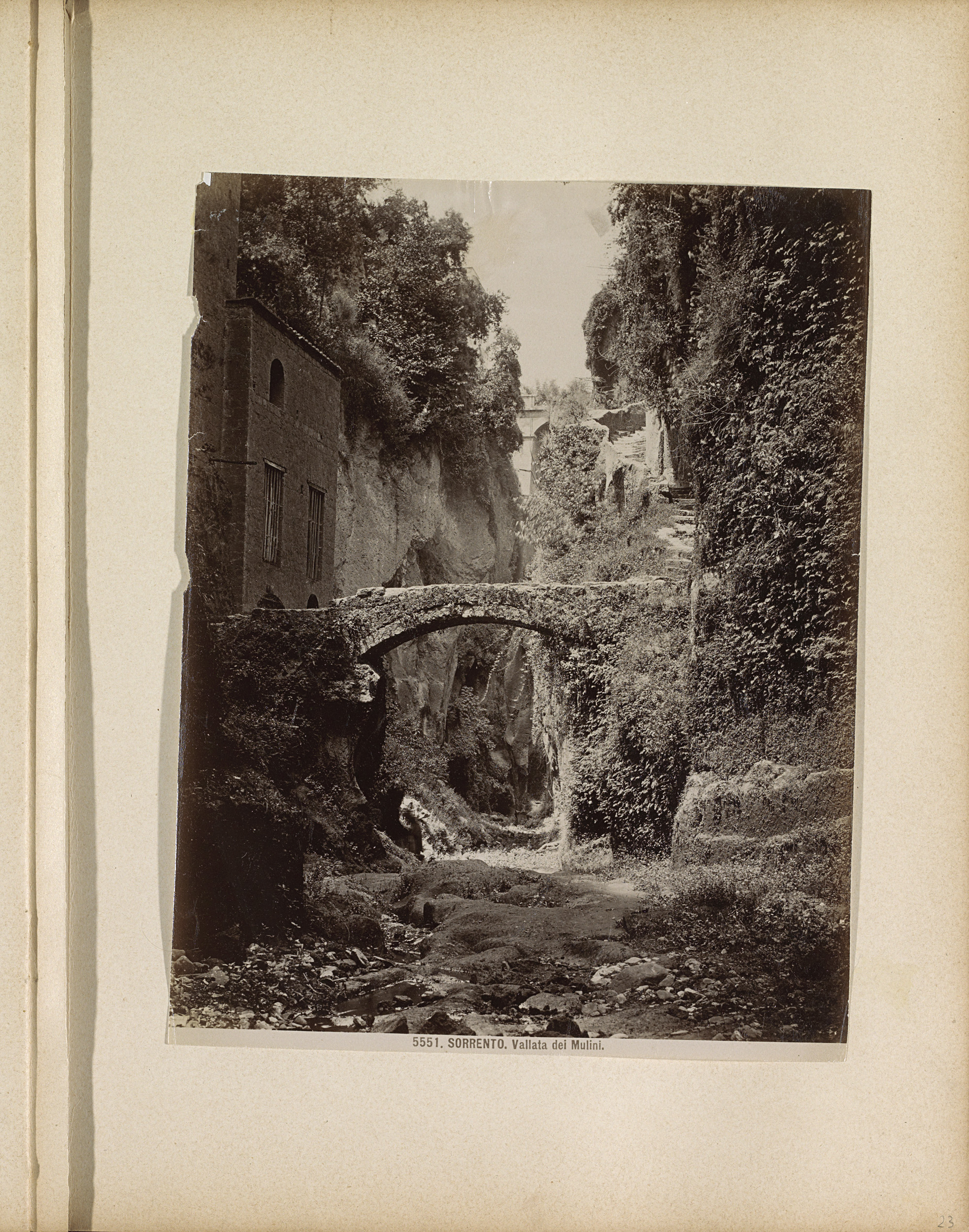 Gezicht op ruïnes in de Vallata dei Mulini te Sorrento