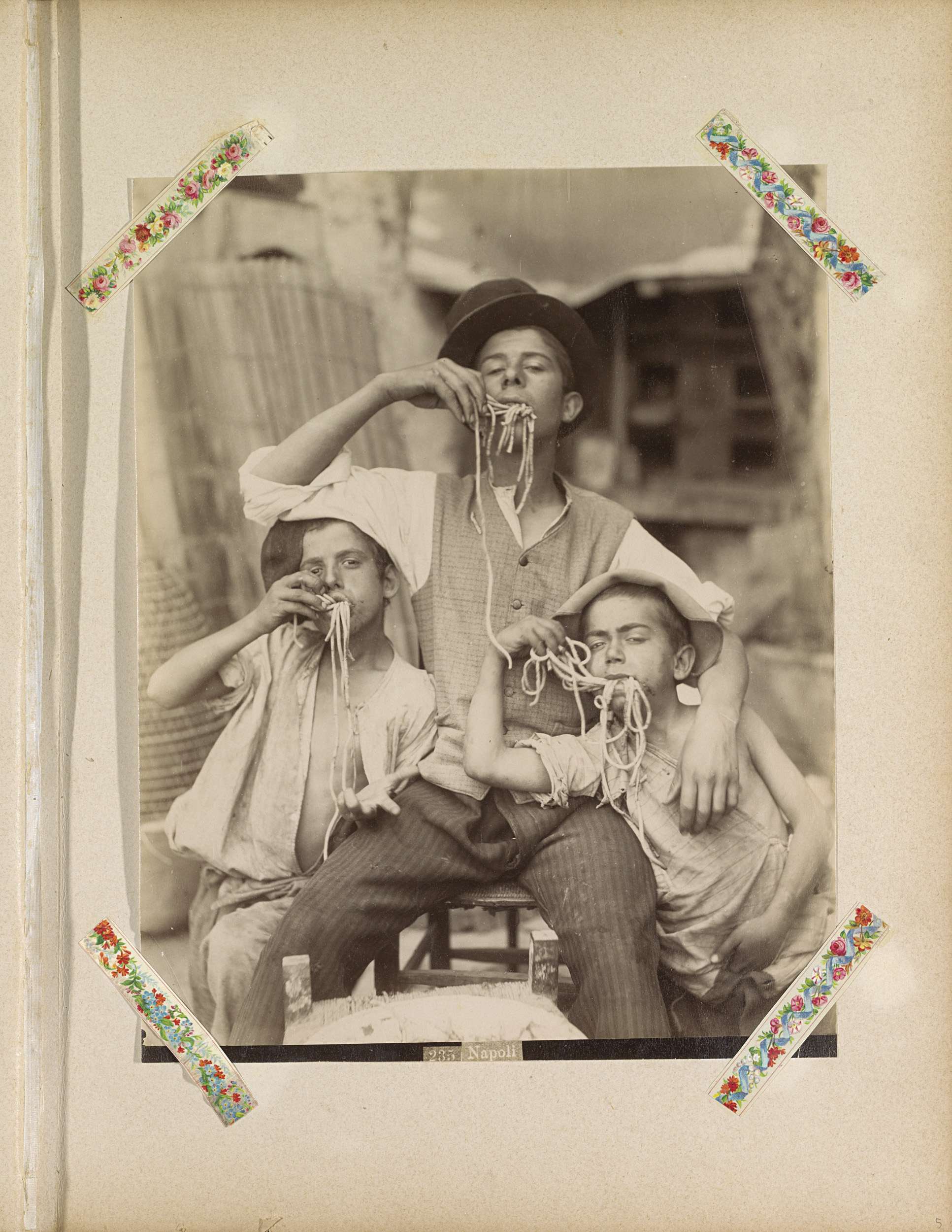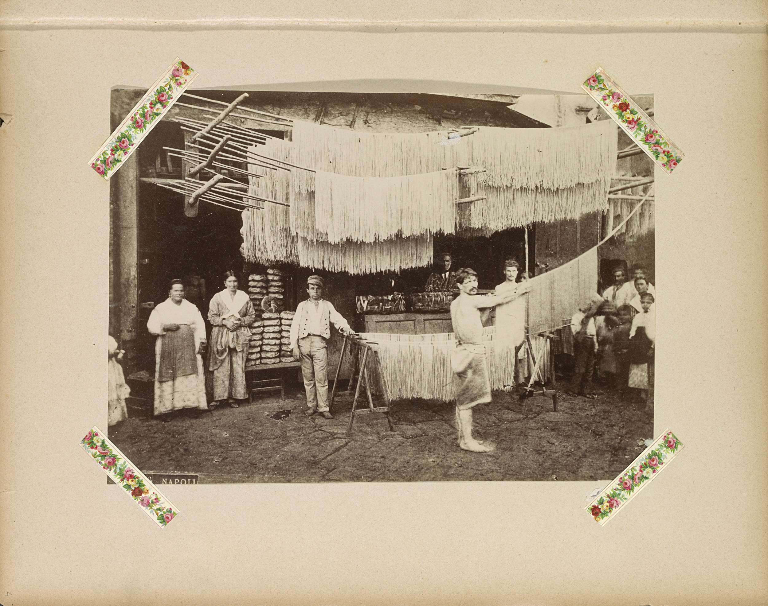 Straatgezicht in Napels met pastamakers en droogrekk...