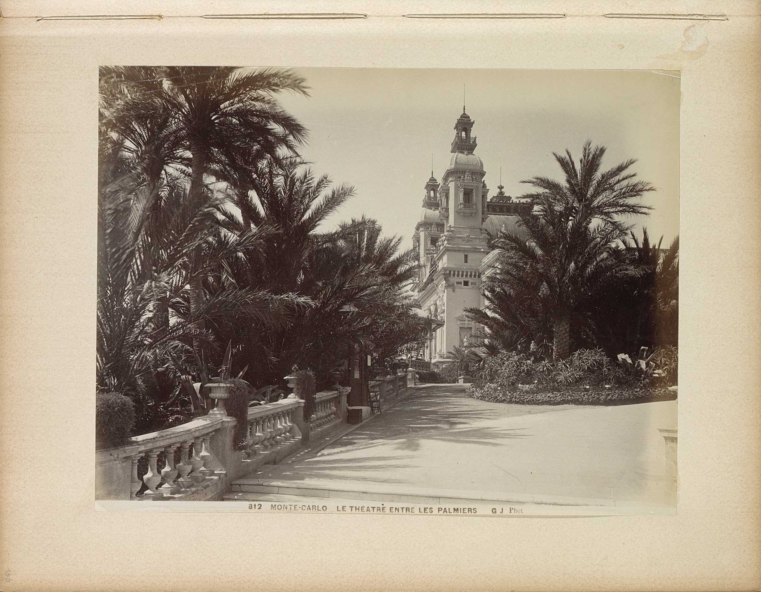 Gezicht op het theater en palmentuinen in Monte-Carlo