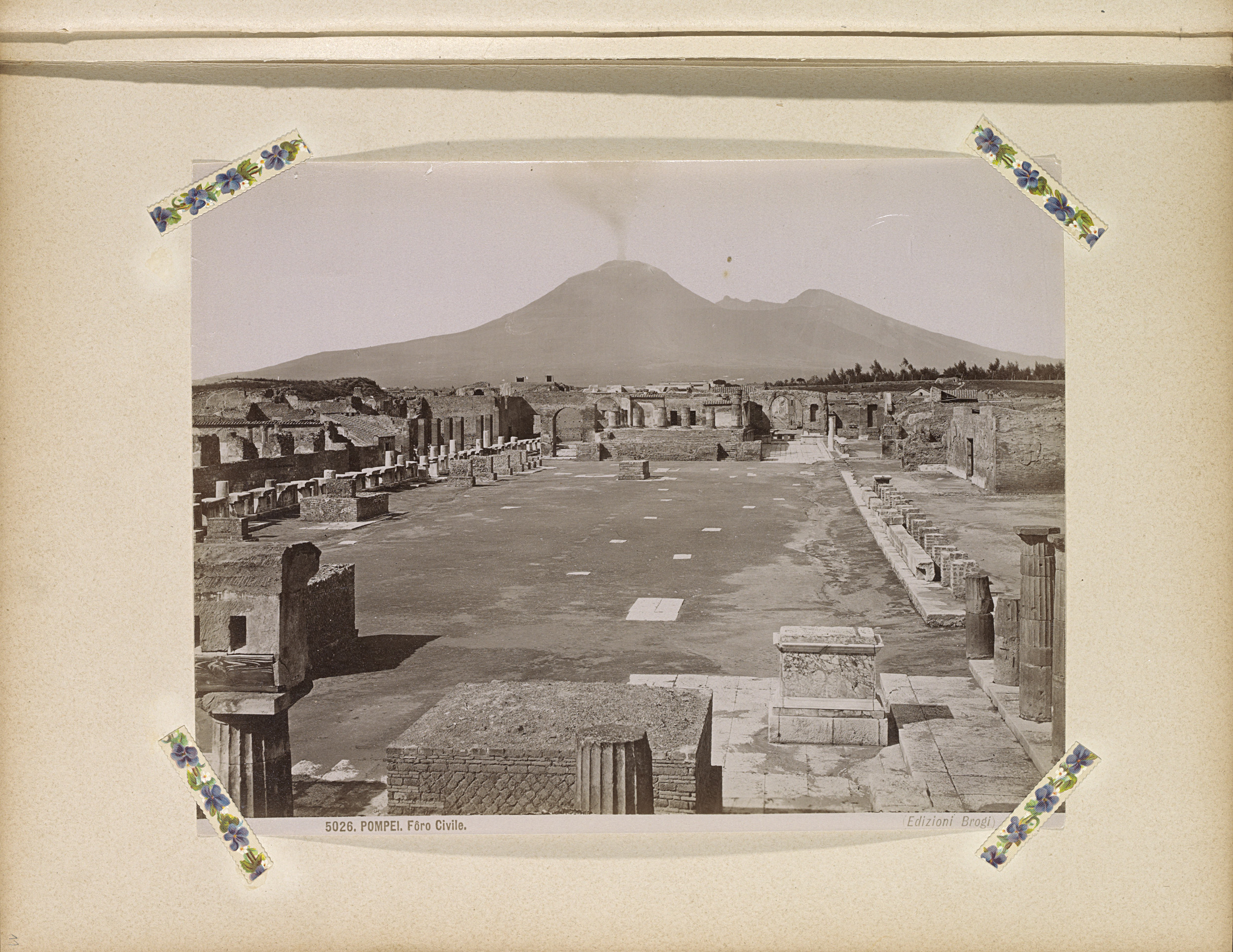 Gezicht op het forum met de Tempel van Jupiter in Po...