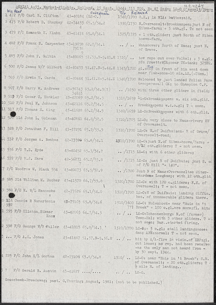 Overzicht Serial A-93 Market-Flights 23 september 1944.