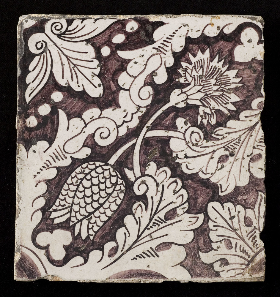 Tegel van keramiek met tinglazuur, voorstellende: or...
