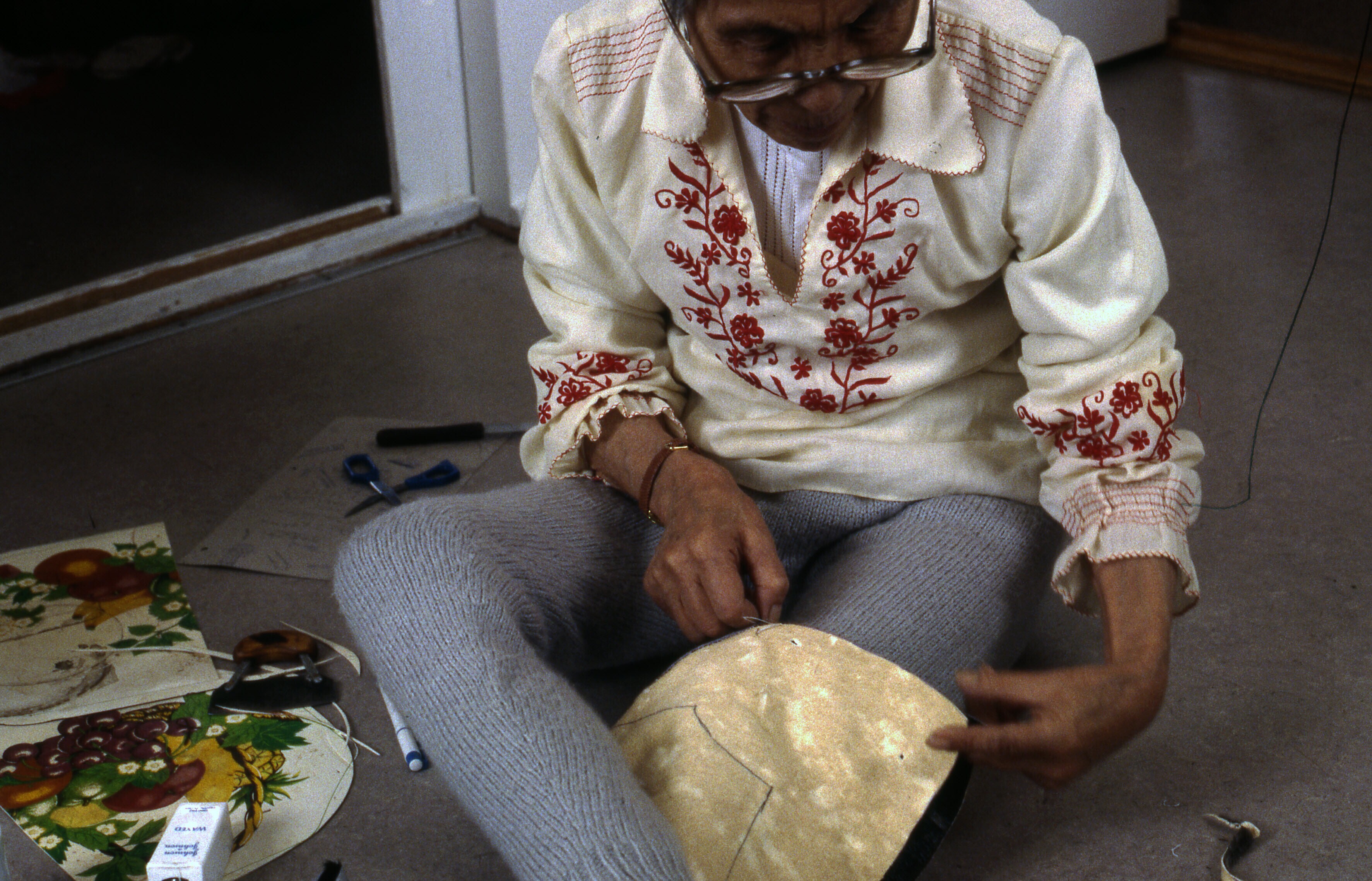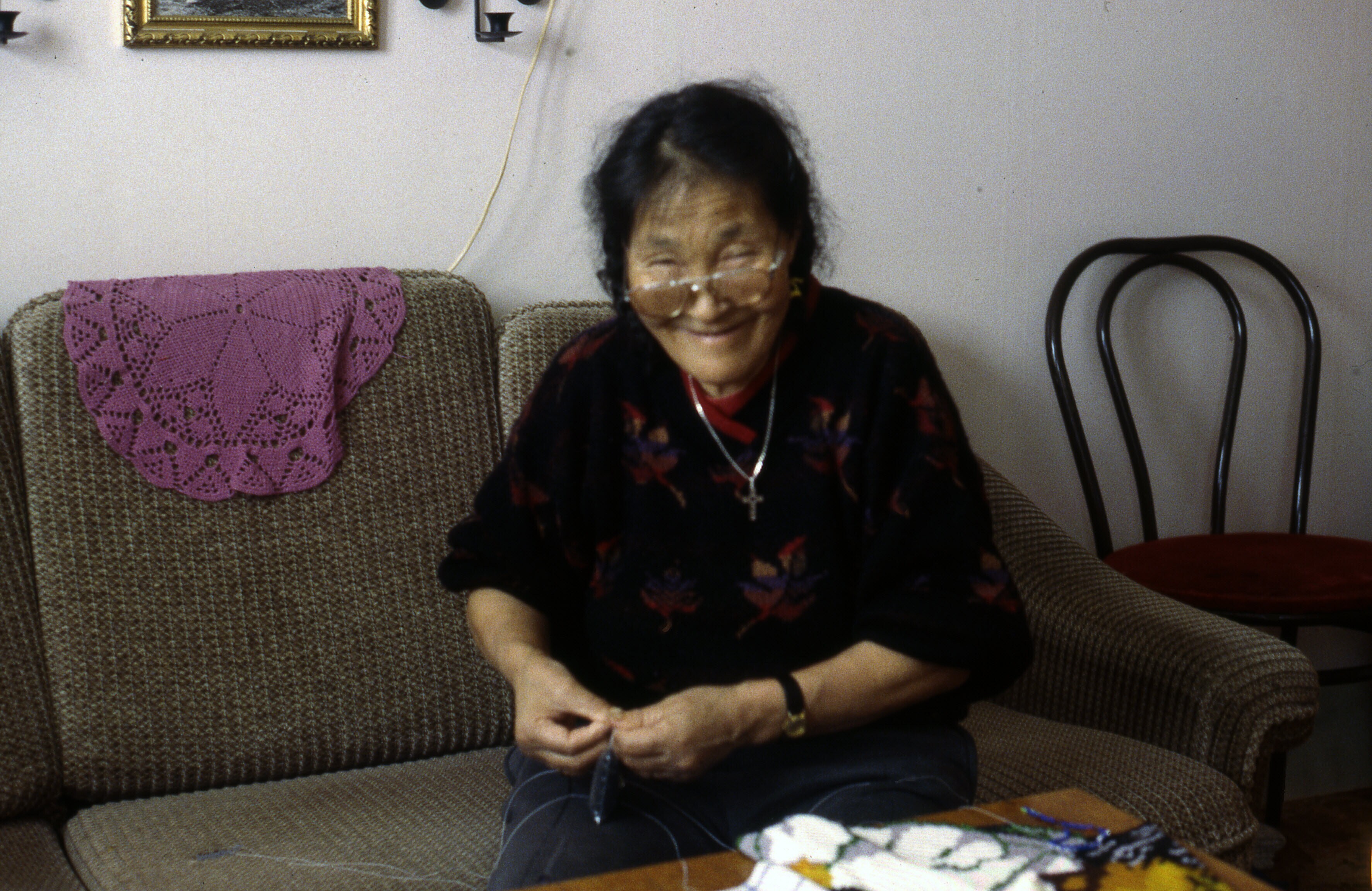 Thomasine Tarkisimat is binnen in een Ost-Groenlands...