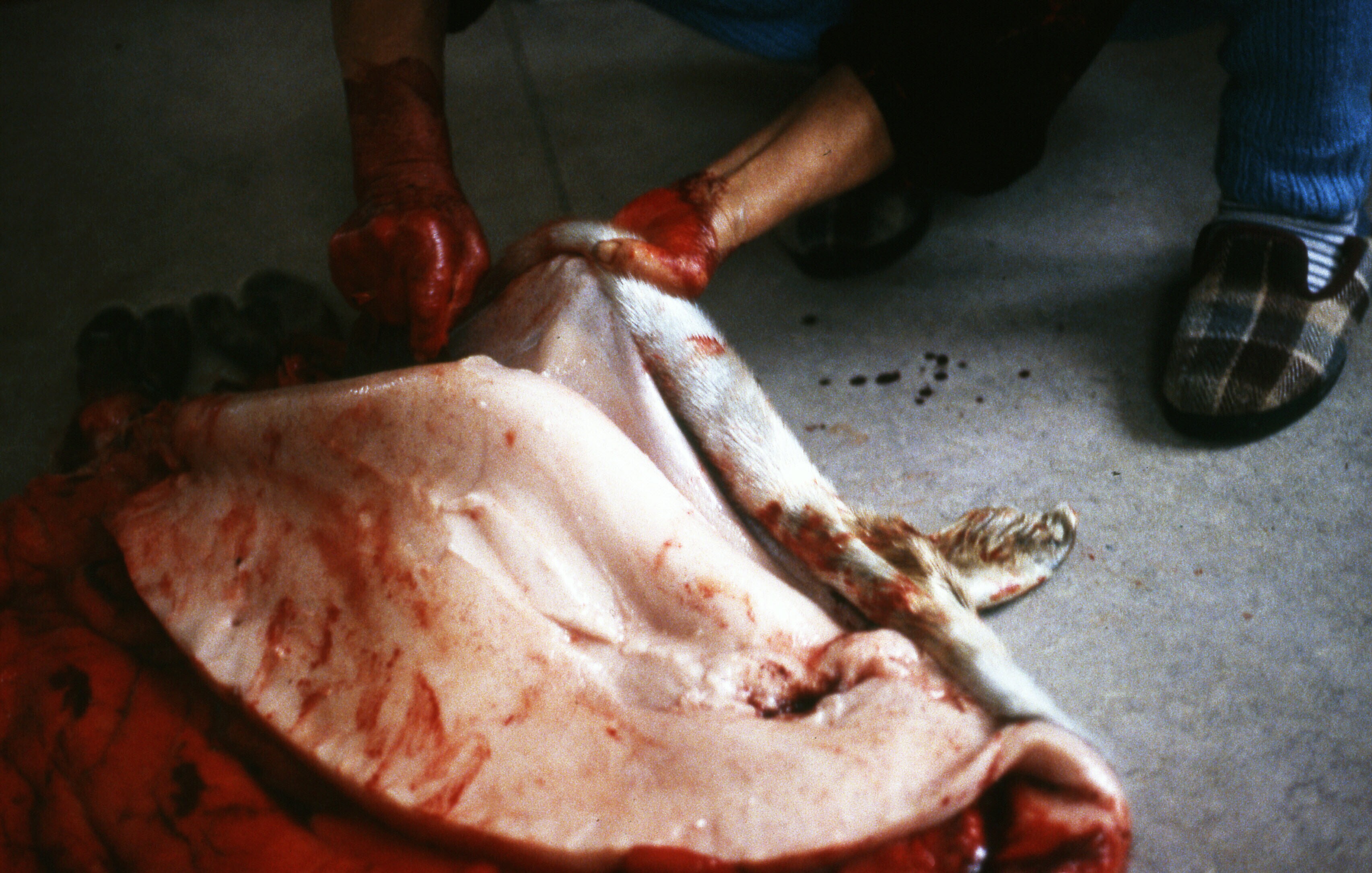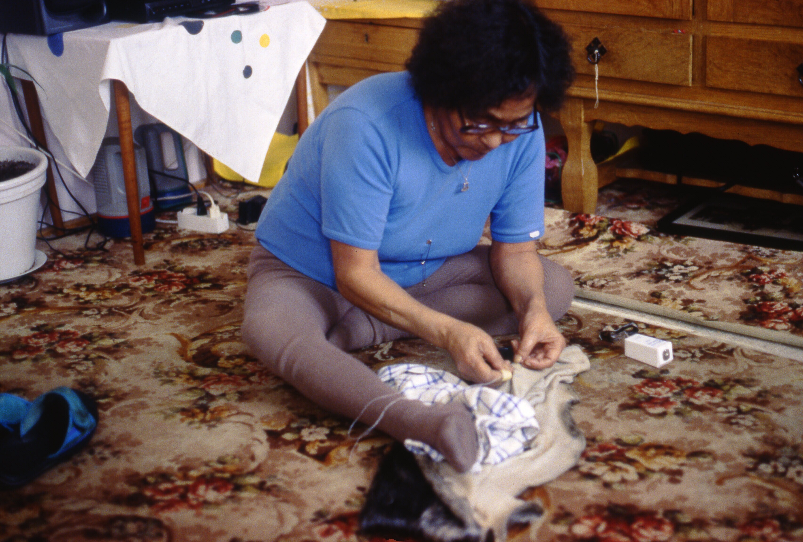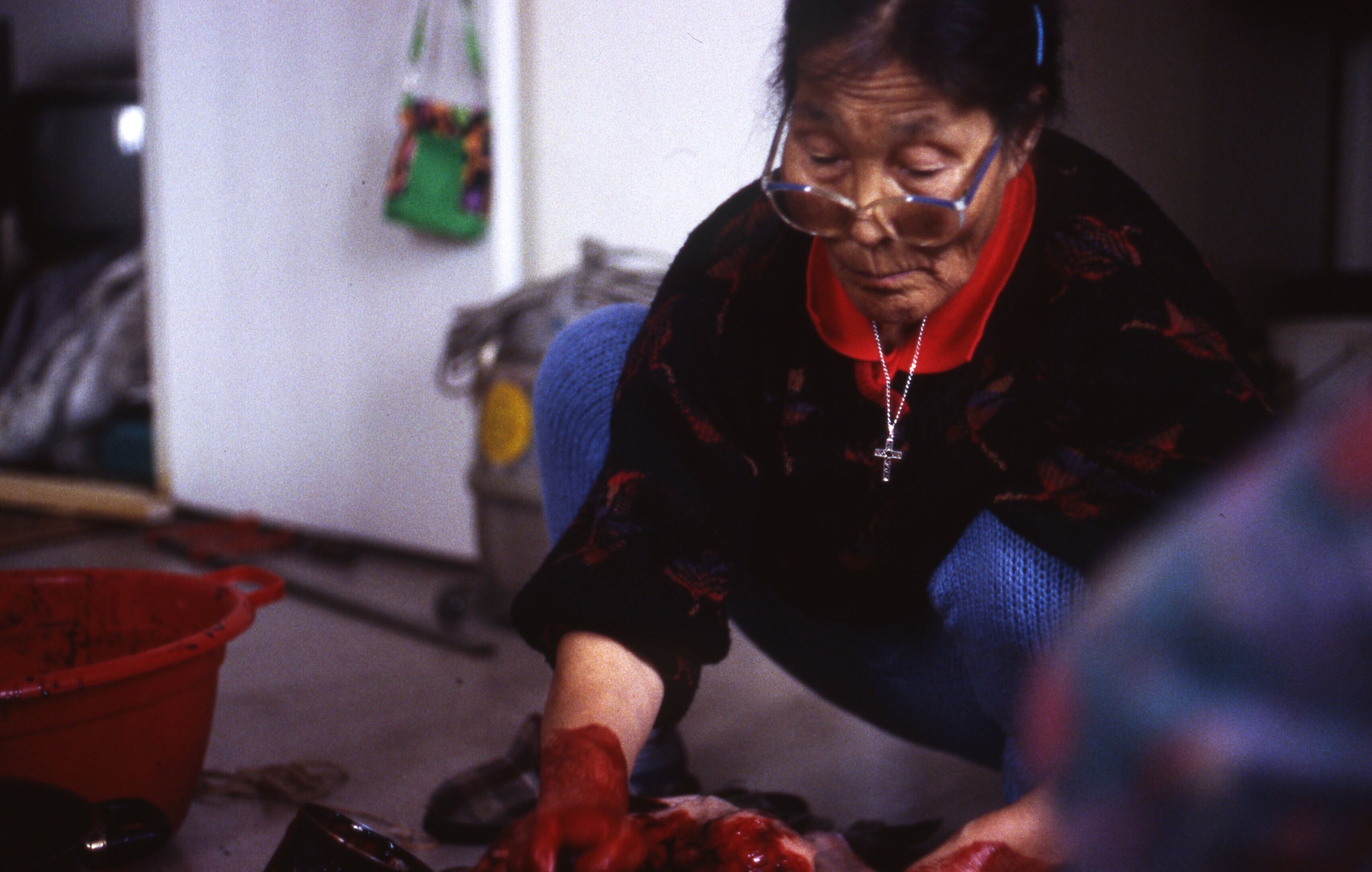 Asta Jonathansen wast een zeehondenhuid in een teil ...