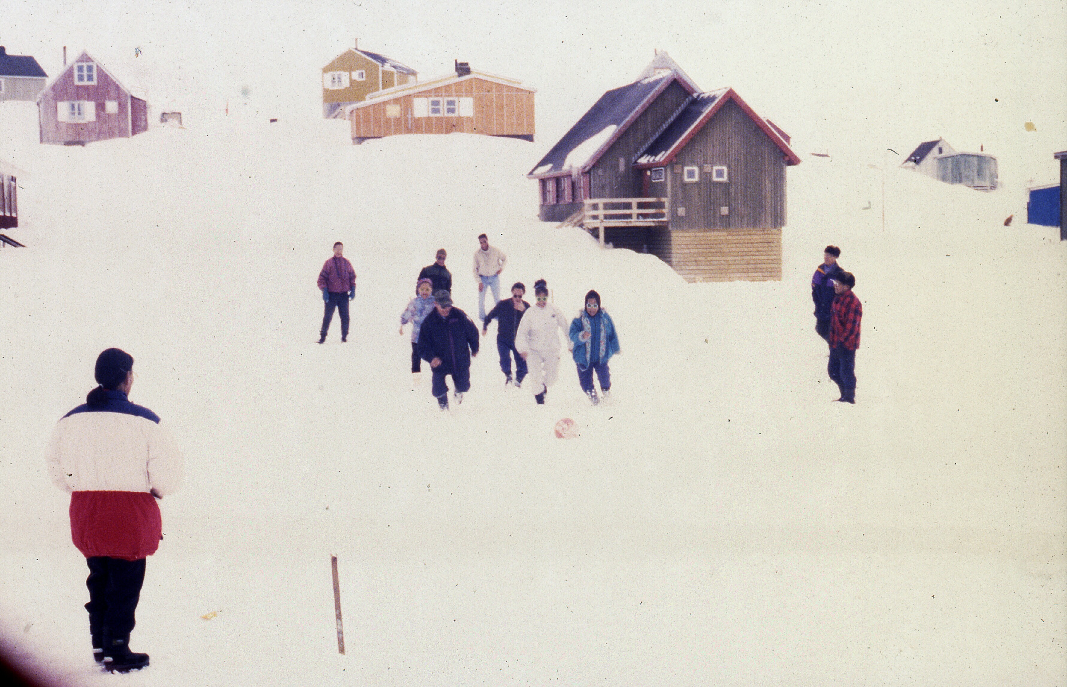 Op het fjord-ijs aan de voet van Tiniteqilaaq maken ...