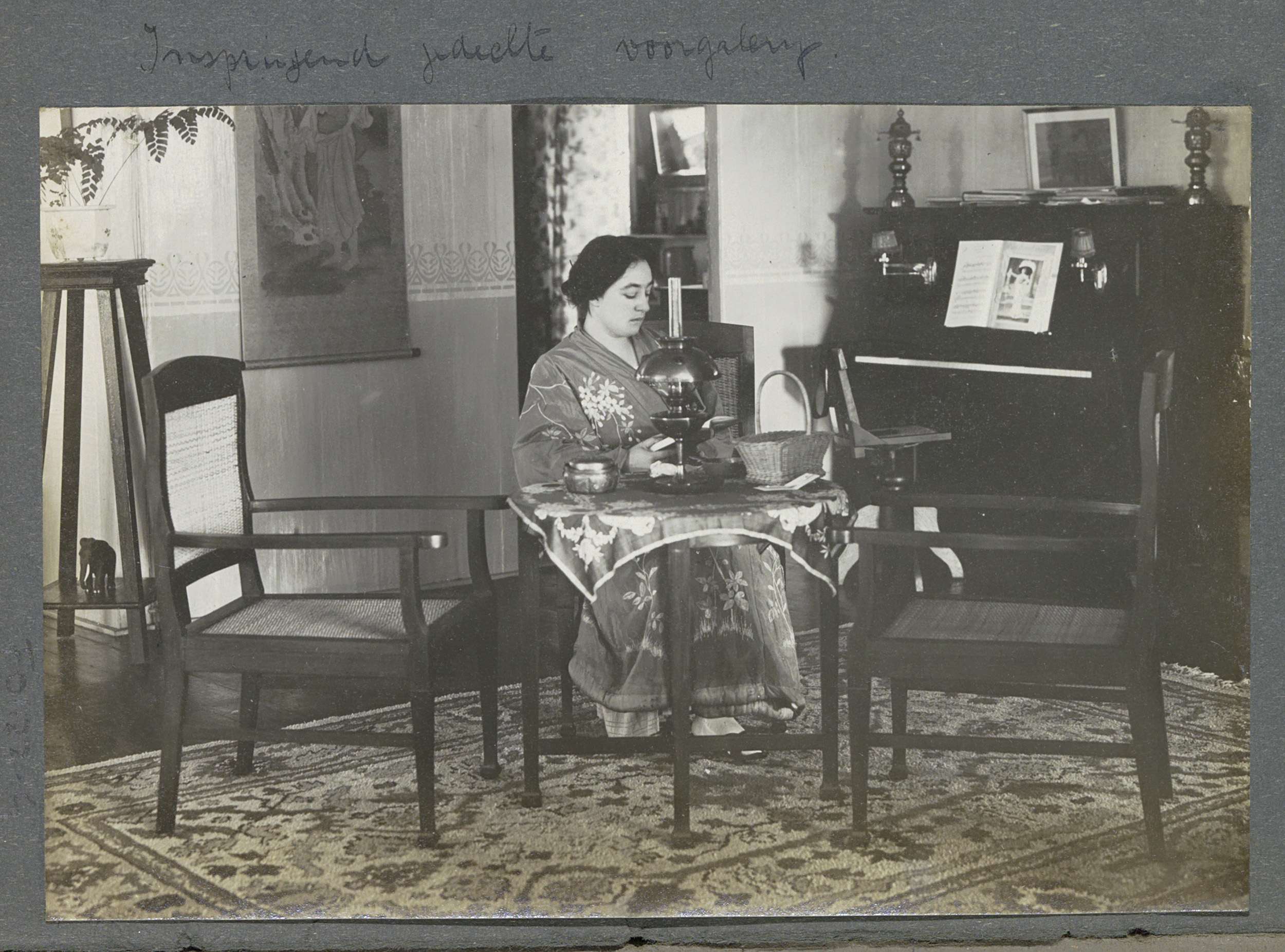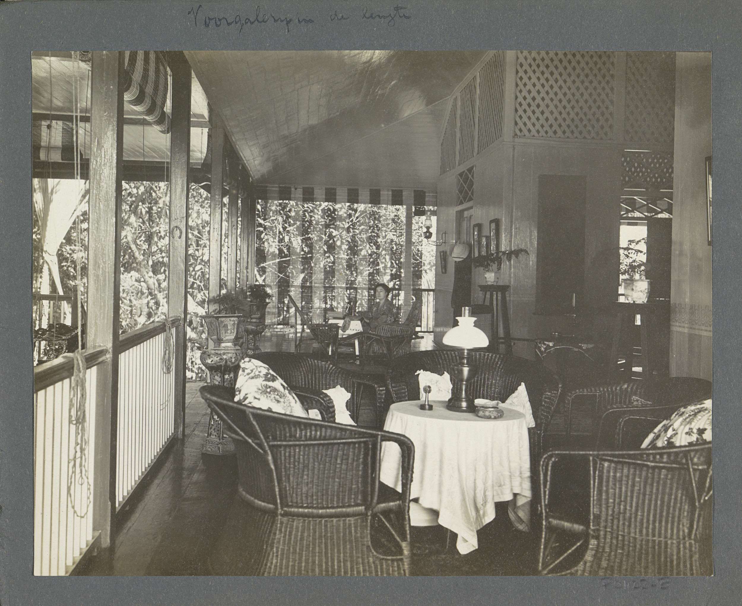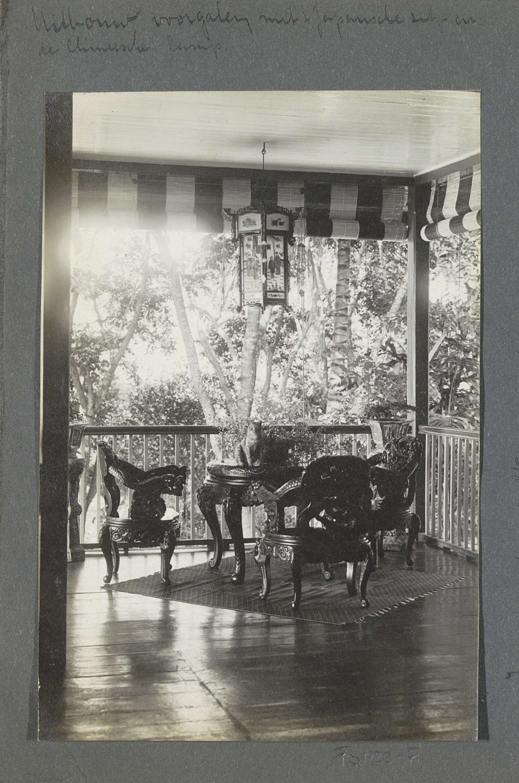 Galerij van een woonhuis op Sumatra met Japans meubi...