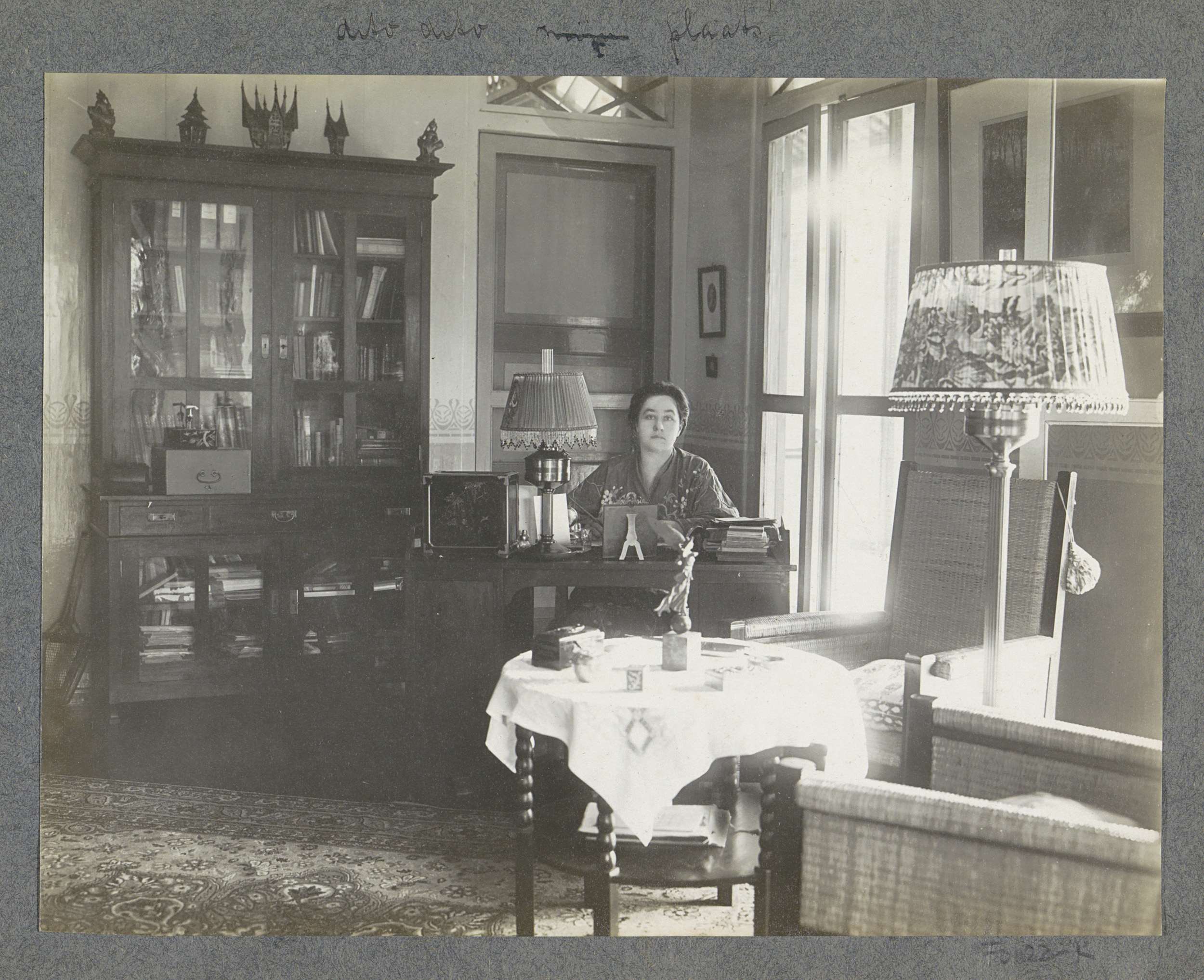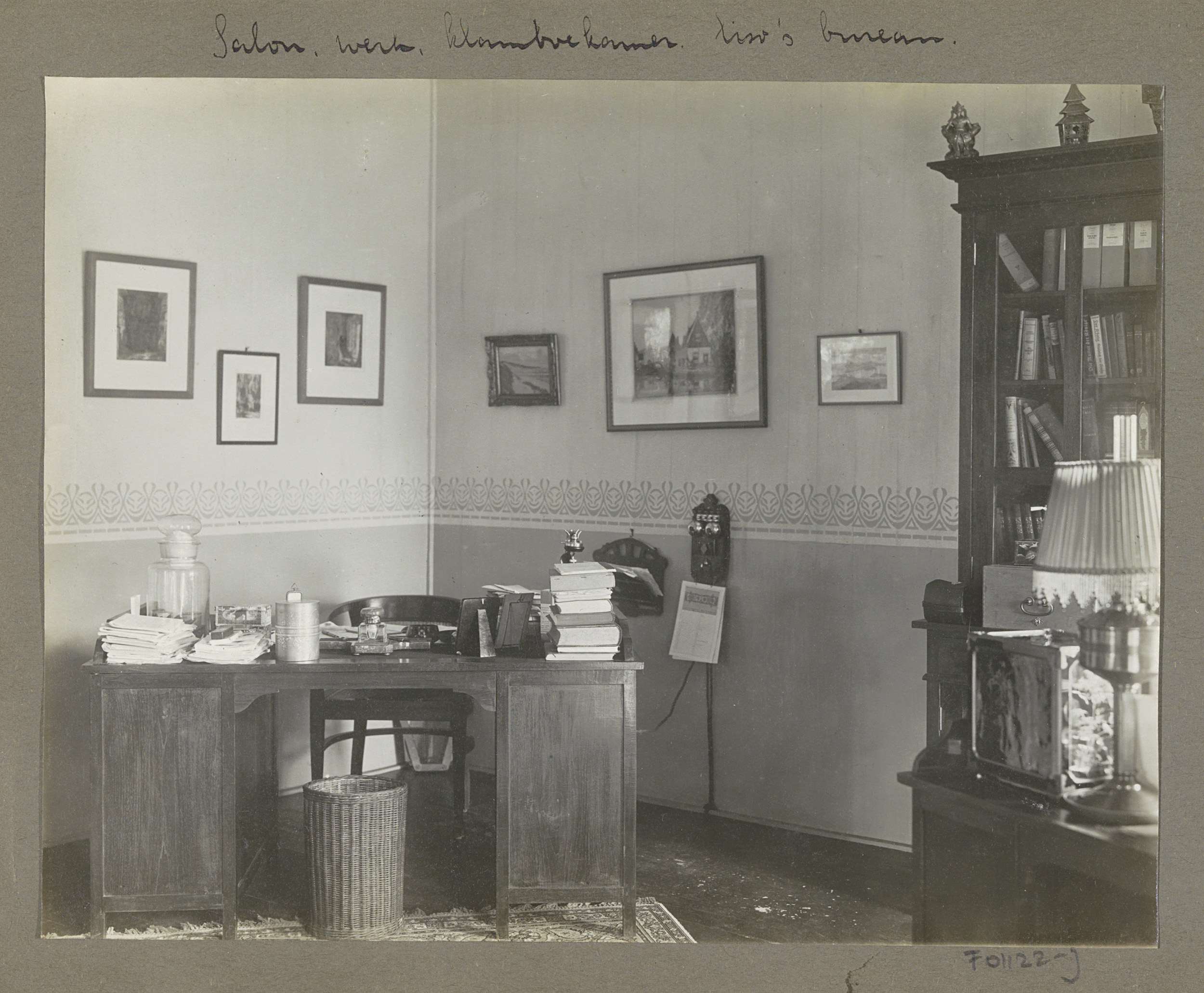 Salon met bureau van Eiso Bergsma in woonhuis op Sum...
