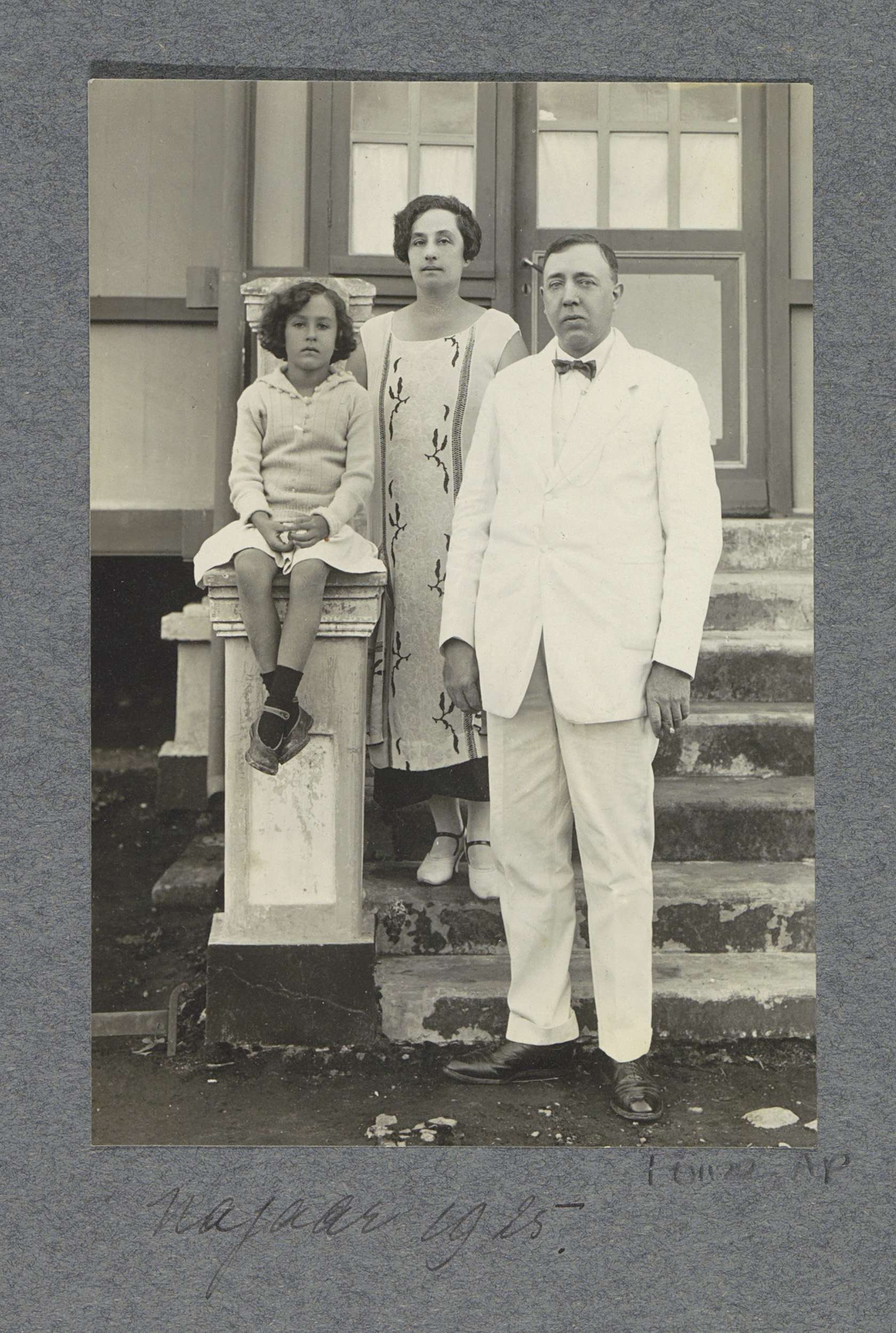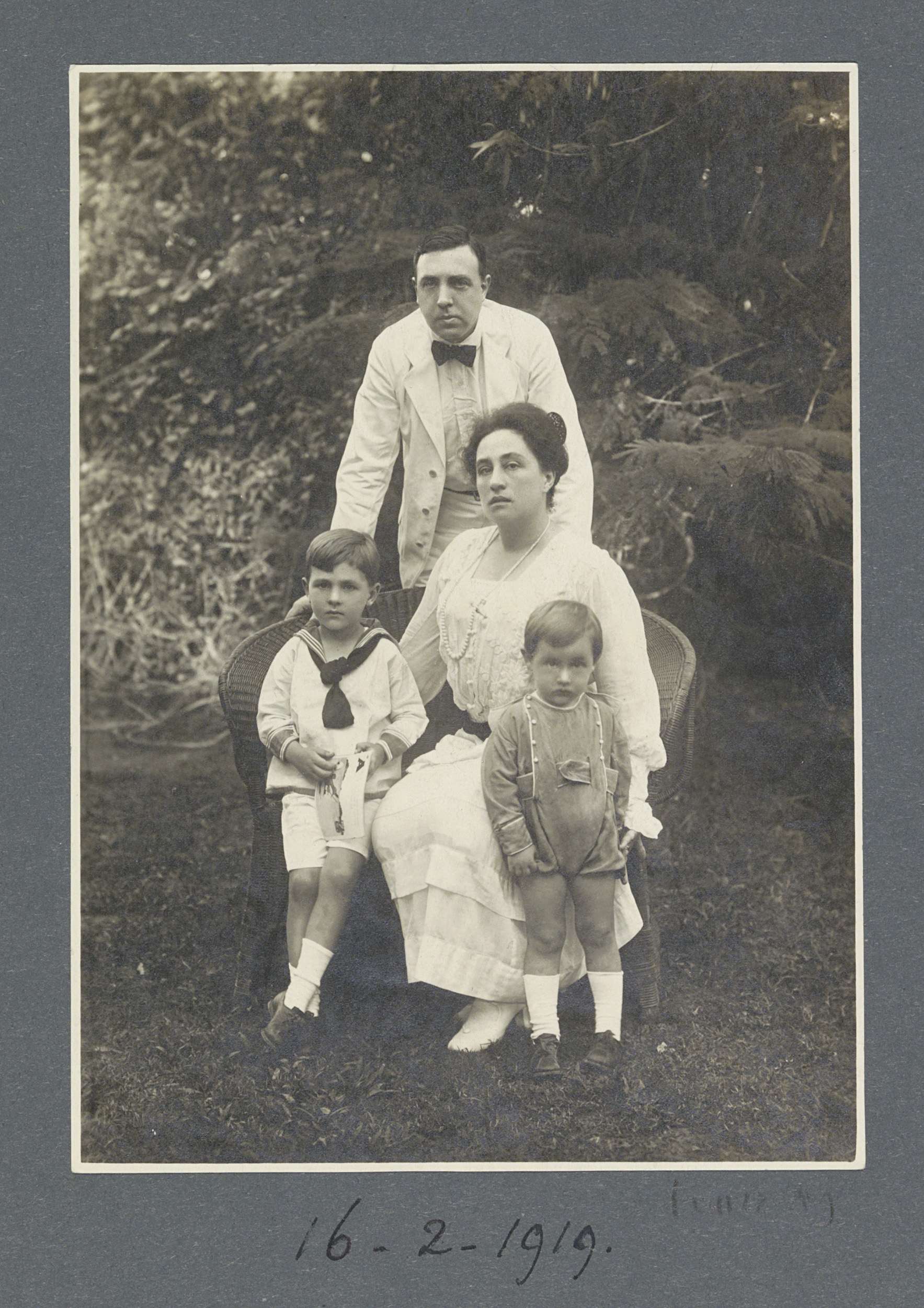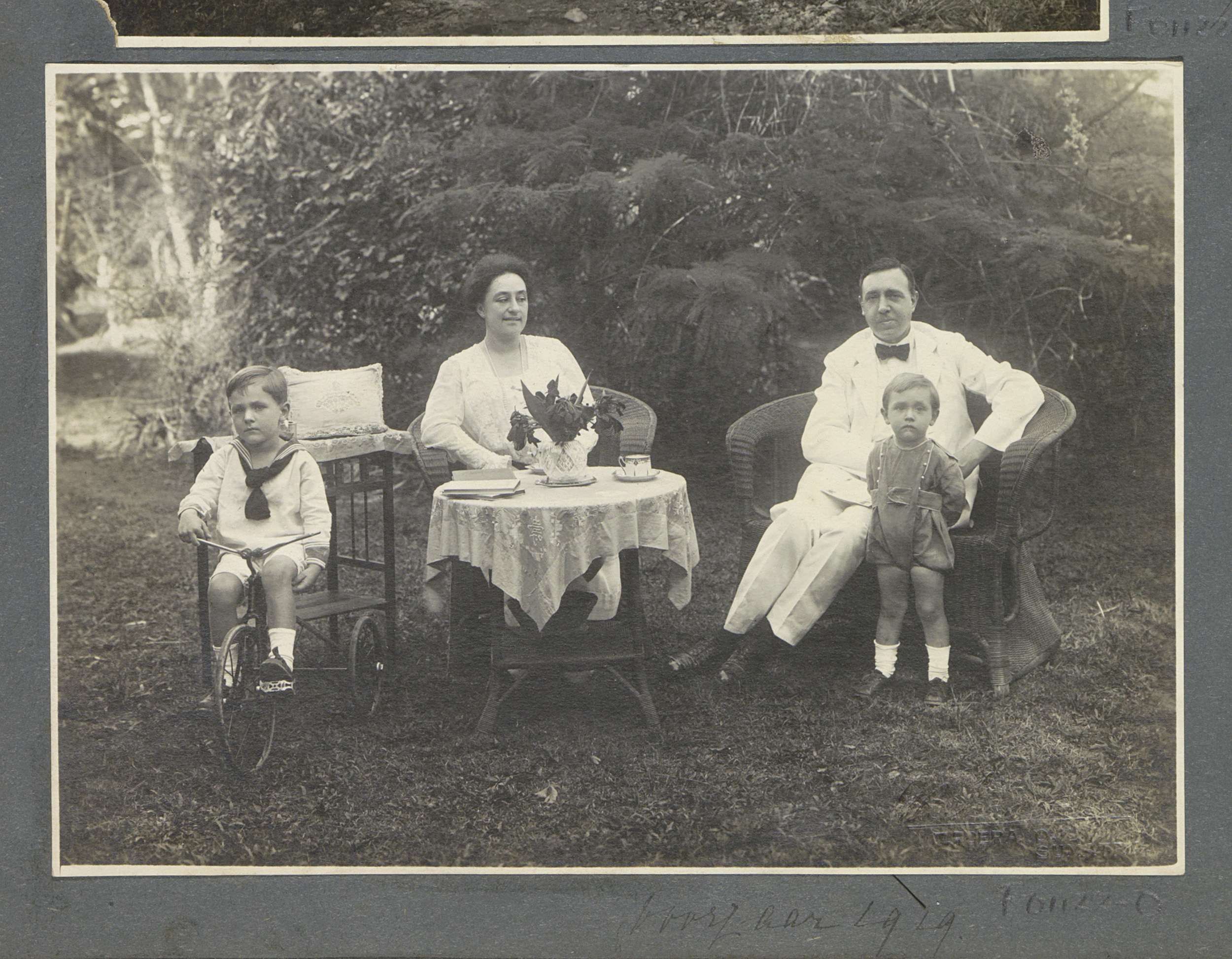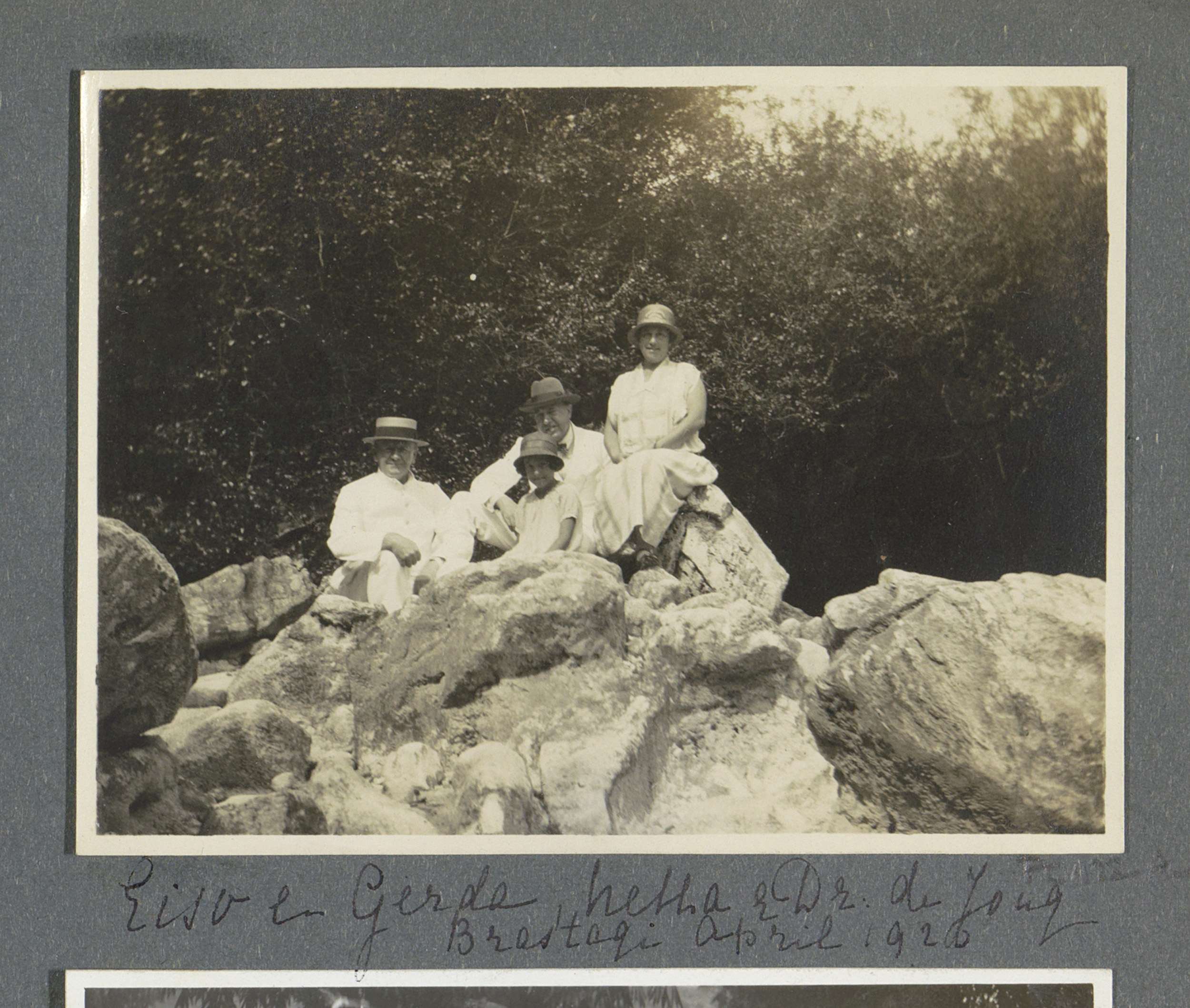 Groepsportret van Eiso, Gerda en Netta Bergsma en dr...