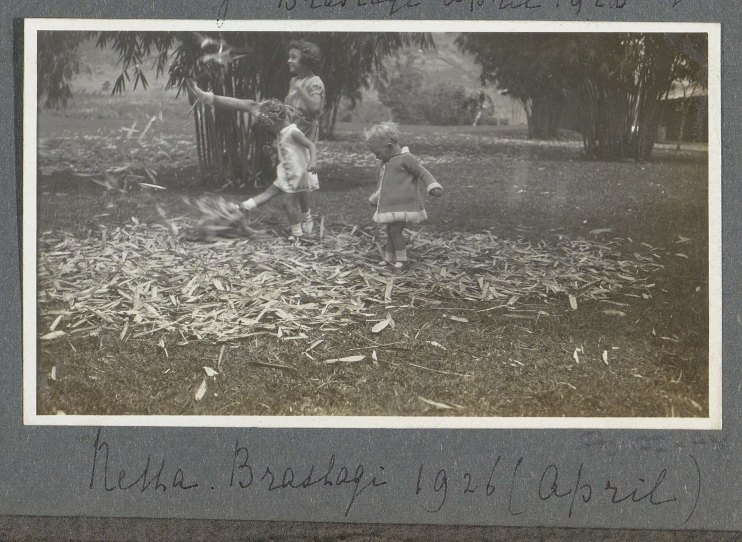 Netta Bergsma en twee kleine kinderen spelend in een...