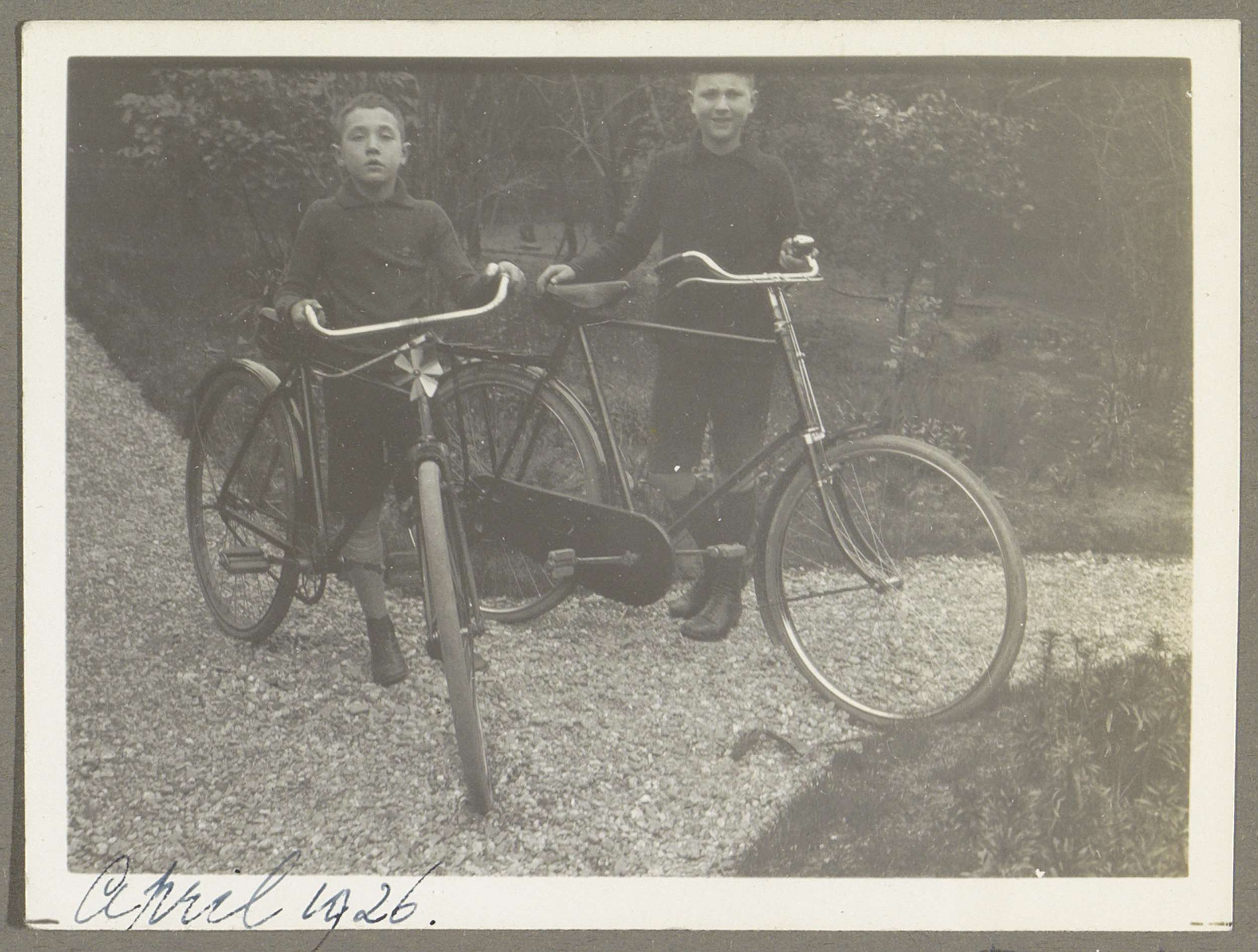 Twee jongens met fietsen, vermoedelijk Hans en Georg...