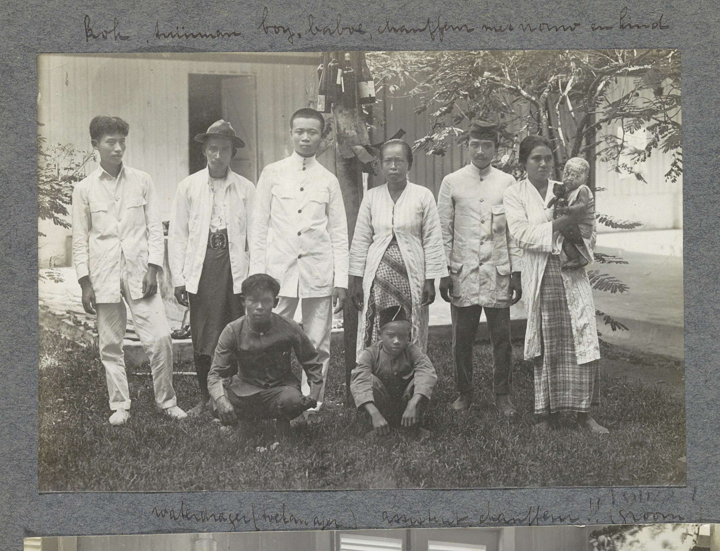 Groepsfoto van het huishoudelijk personeel van de fa...