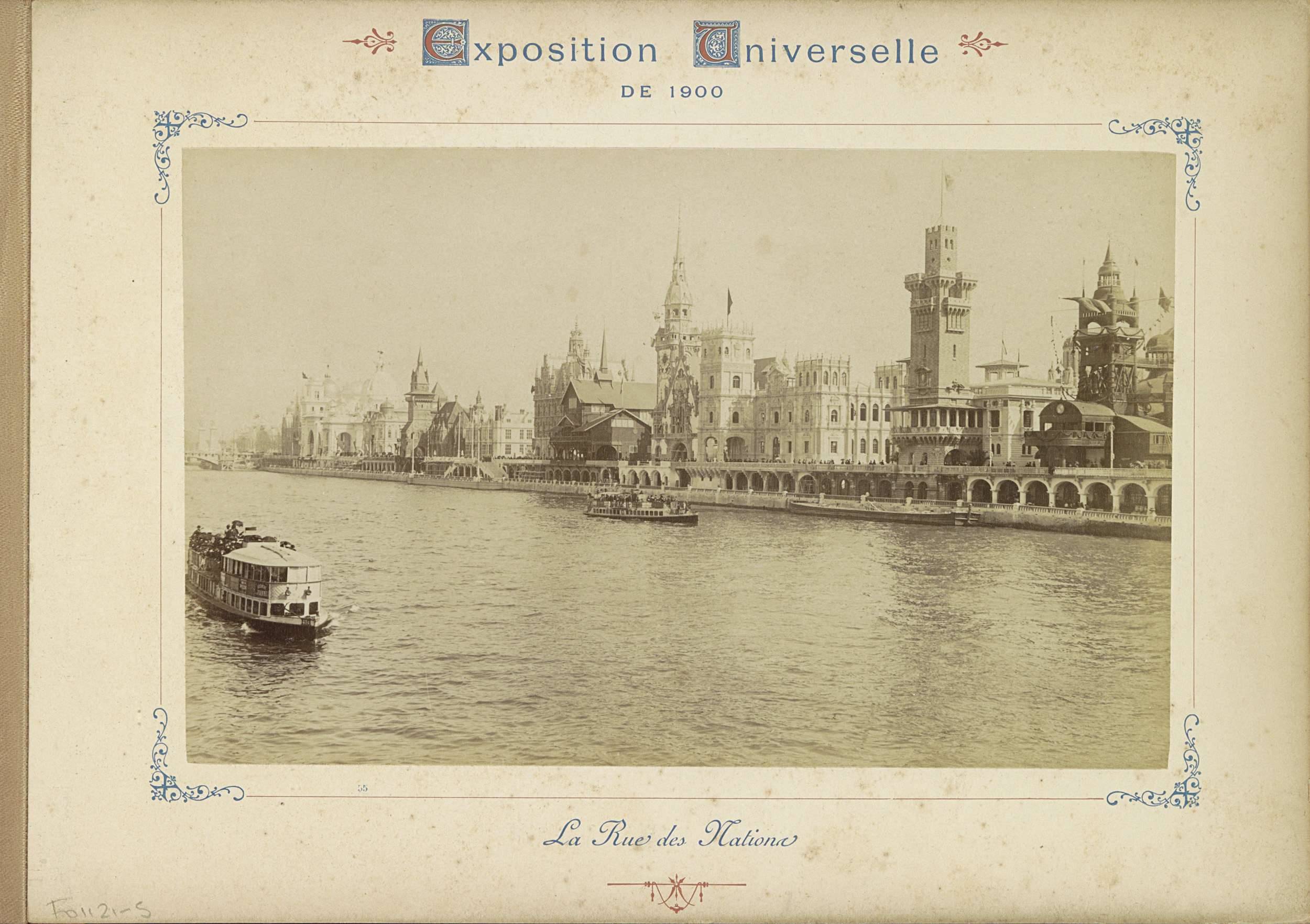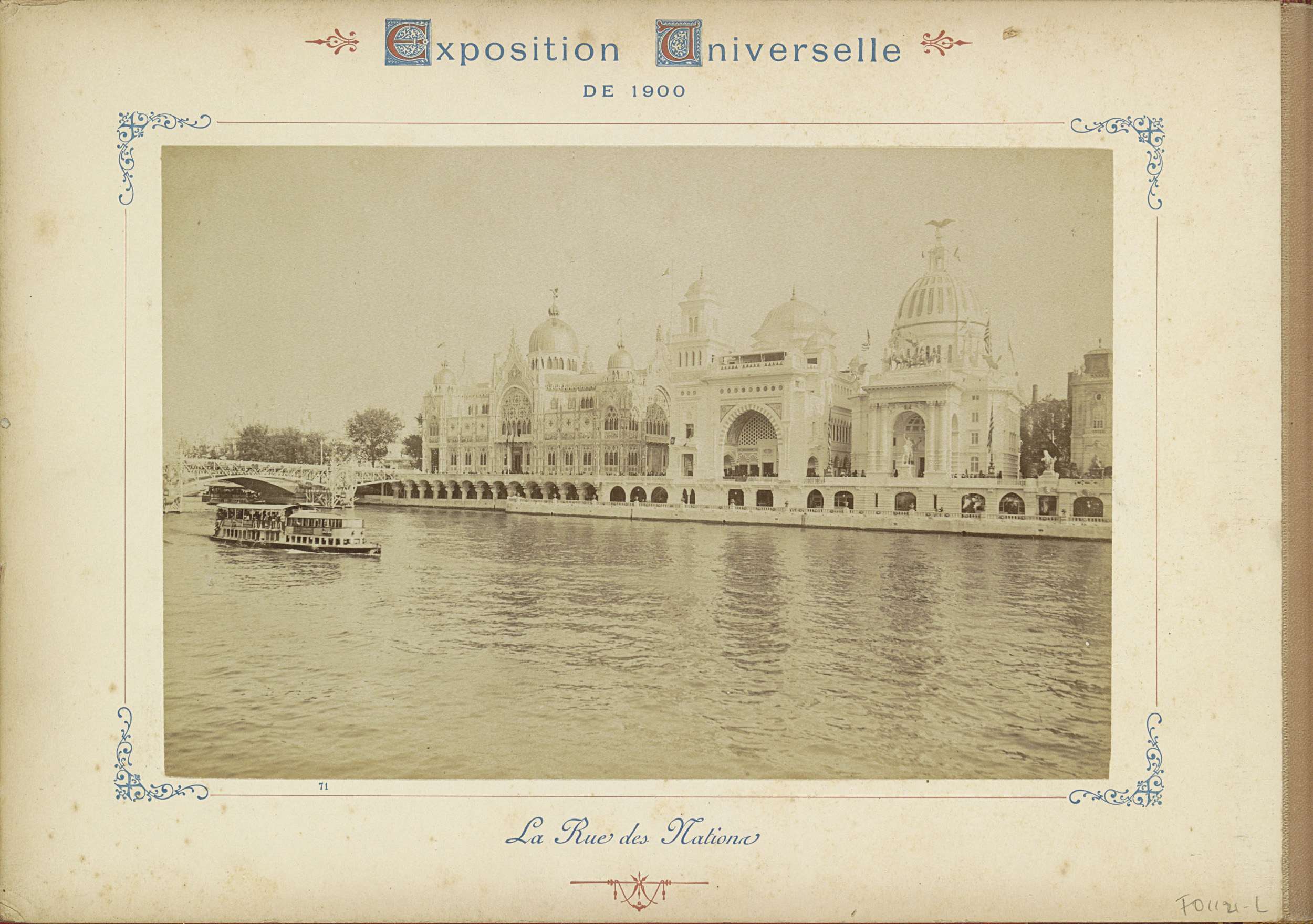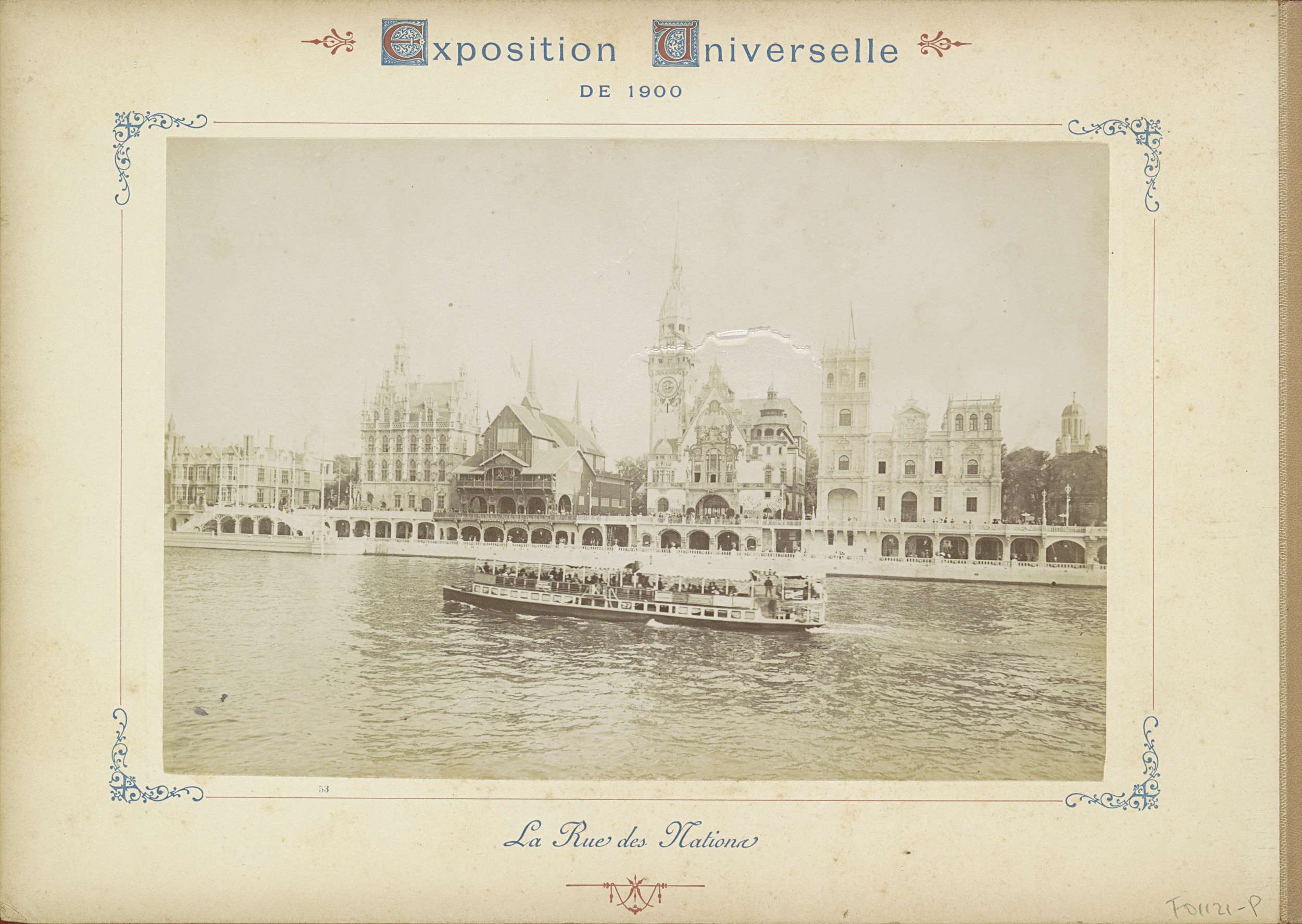 Gezicht op de landenpaviljoens aan de Rue des Nation...