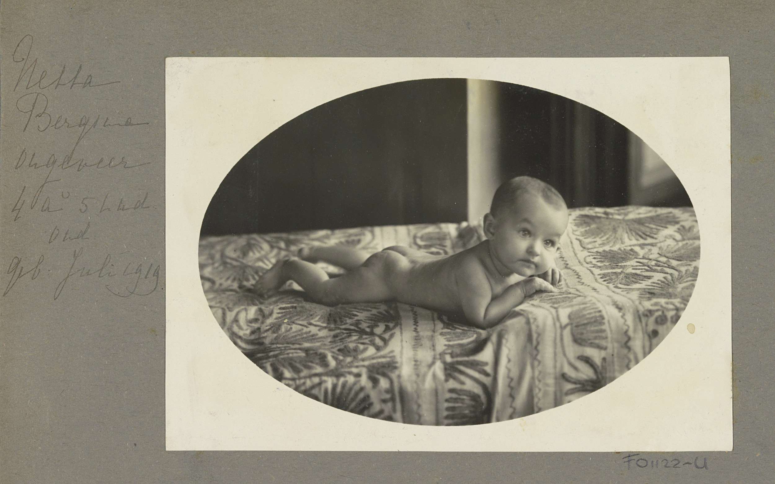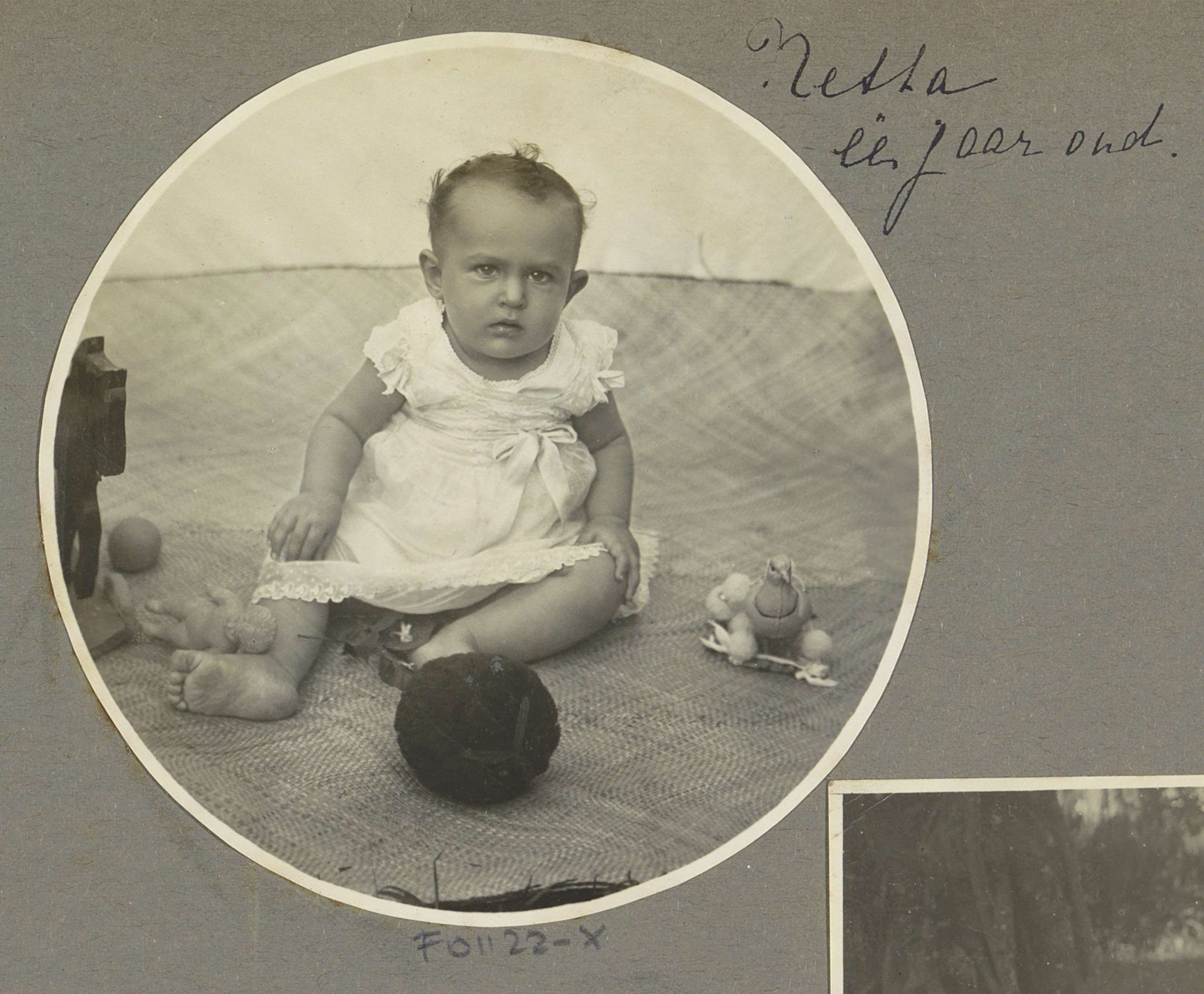 Portret van Netta Bergsma als kind in pofbroek in ee...