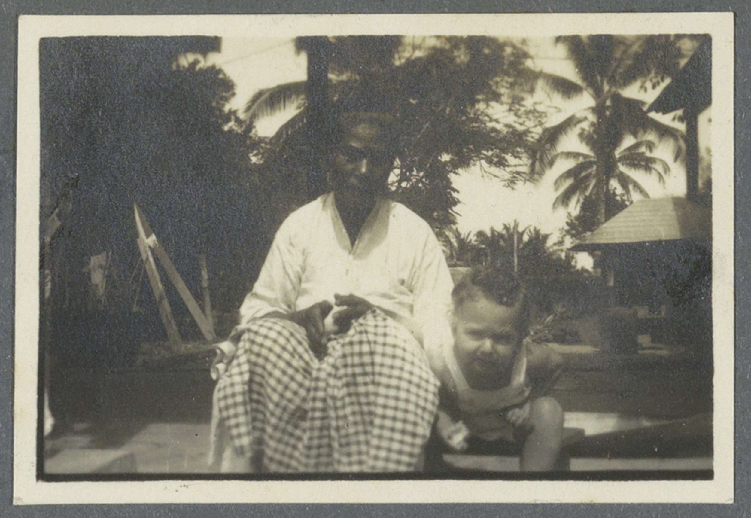 Man met kind op Sumatra, mogelijk Eiso Bergsma en zi...