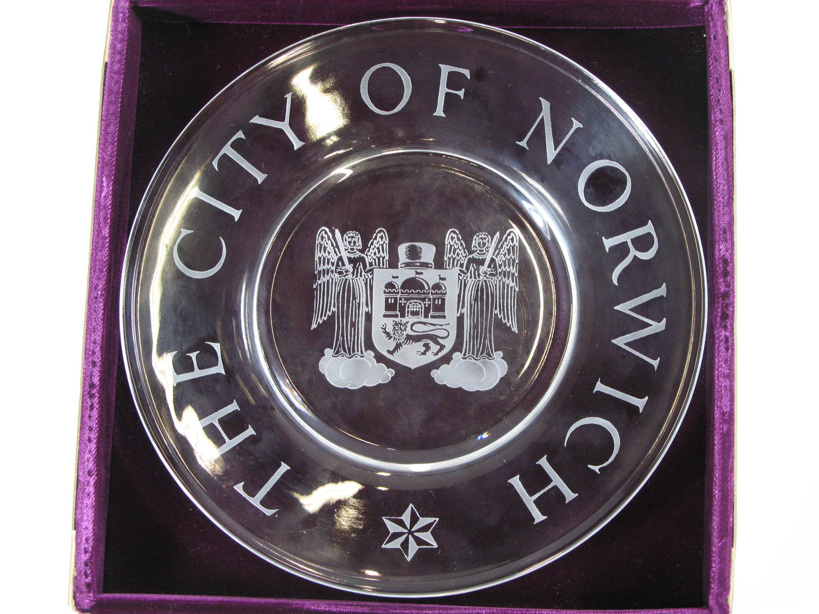 Kristallen geslepen schaal geschonken door burgemees...