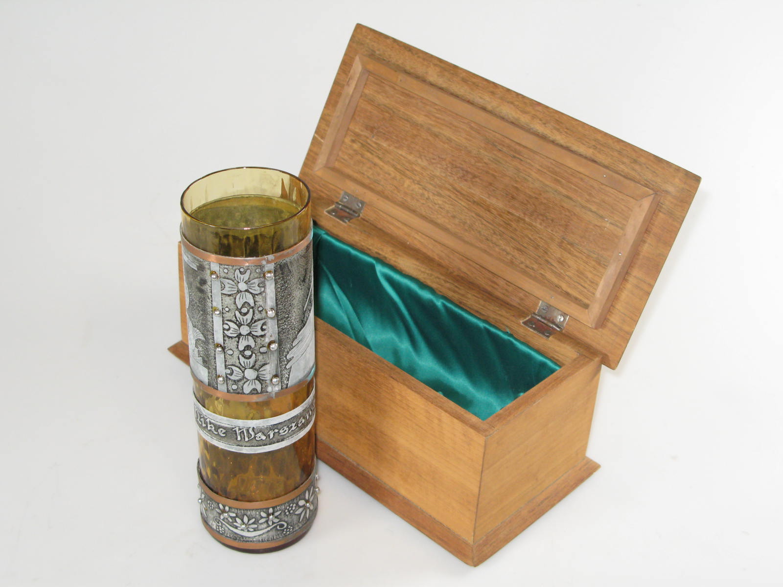 Kistje voor sierglas geschonken door de stad Warscha...