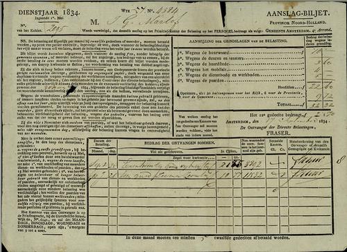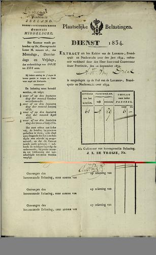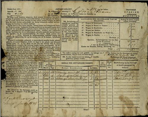 Aanslagbiljet, personele belasting, 1834