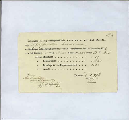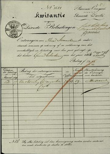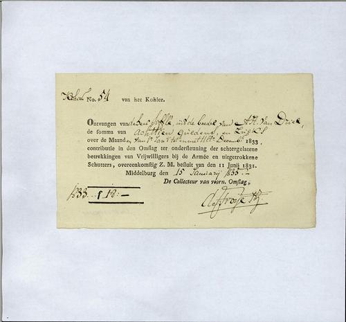 Kwitantie, schutterijbelasting, 1835