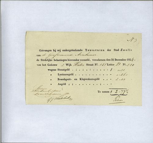 Kwitantie, straatgeld, lantaarngeld, brandspuitgeld,...