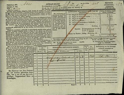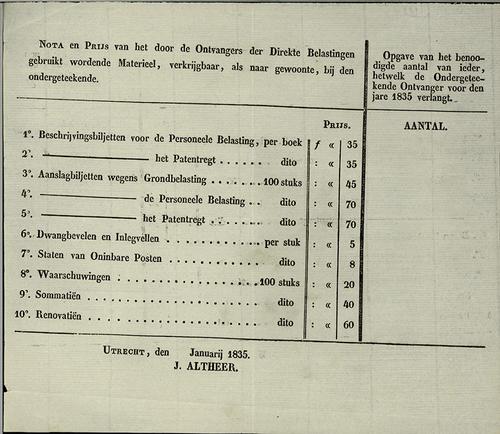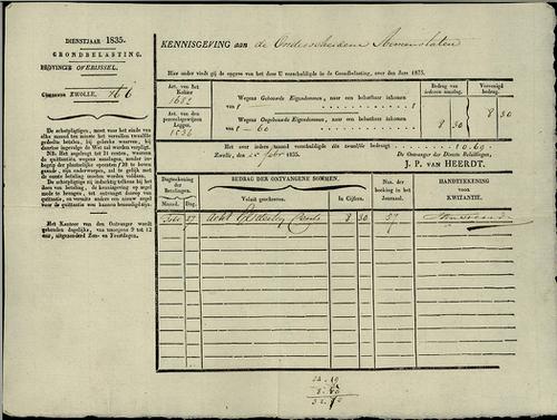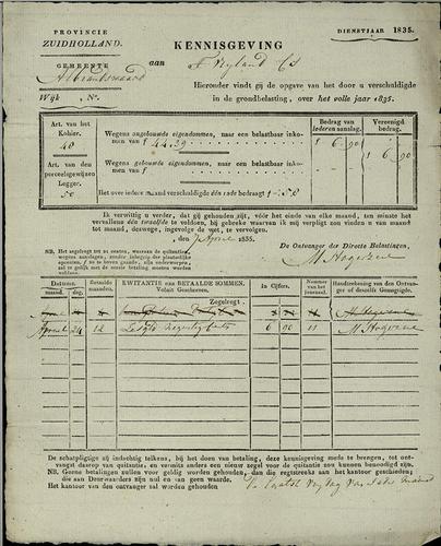 Aanslagbiljet, grondbelastisting, 1835